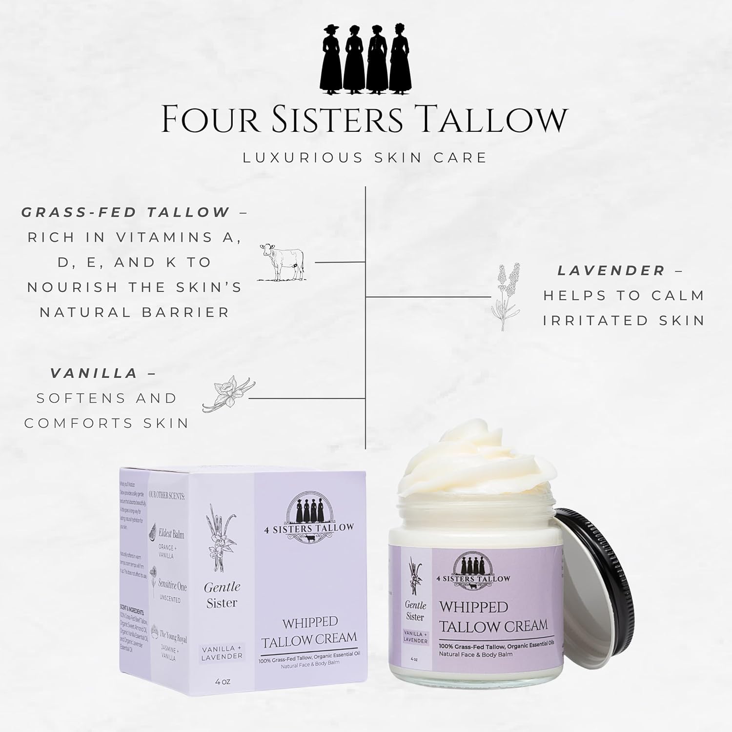 FIND YOUR SISTER – Introducing 4 Sisters Tallow, Luxuriously Whipped Tallow Lotions Made With Simply 100% Grass-Fed Tallow And Natural Important Oils—Nothing Else. No Parabens, Fillers, Or Synthetics—Simply Clear, Wealthy, Chemical Free Moisture Your Pores and skin Will Love.