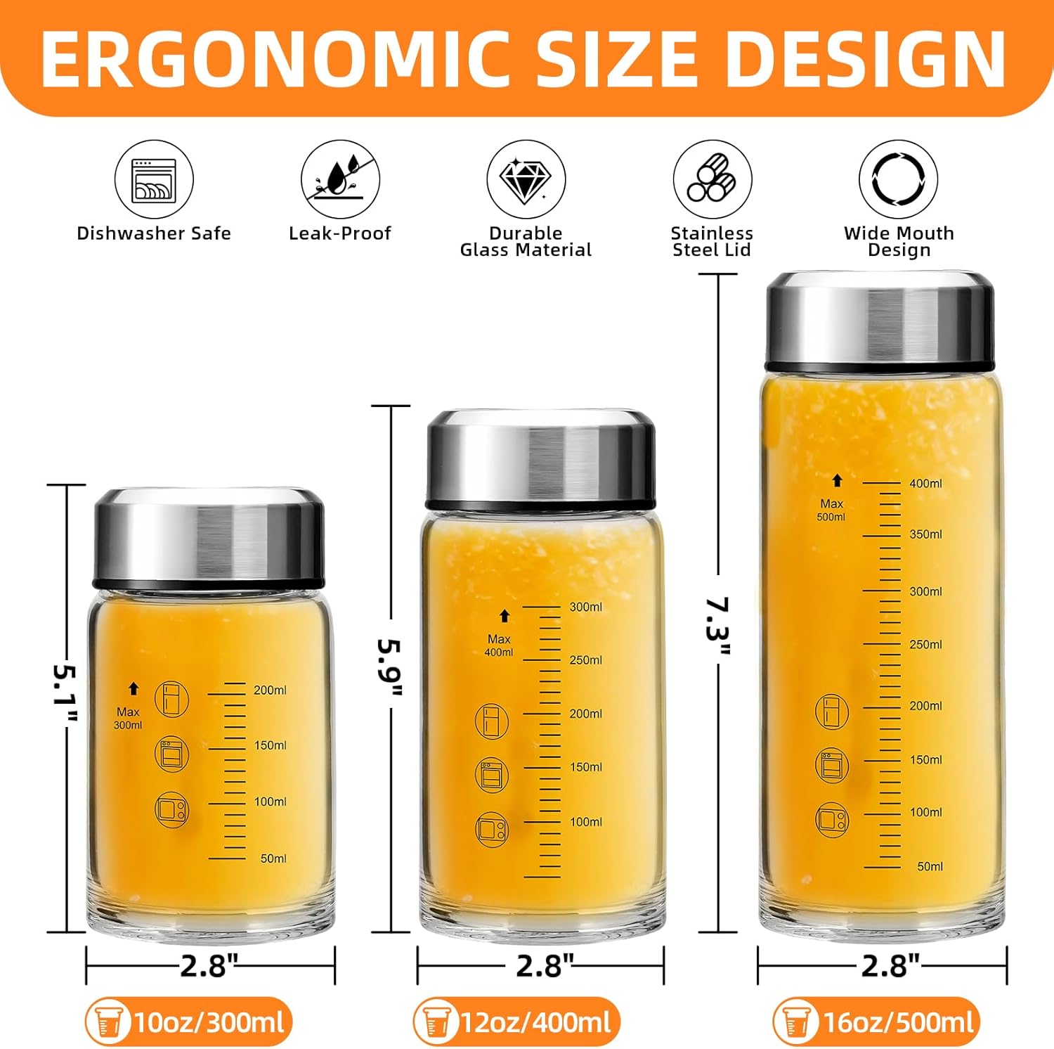 Premium Borosilicate Glass – clear, warmth/chilly resistant, and ultra-durable. No-Spill Design – Toss it in your lunch tote or backpack – utterly hassle-free! Freshness made easy.