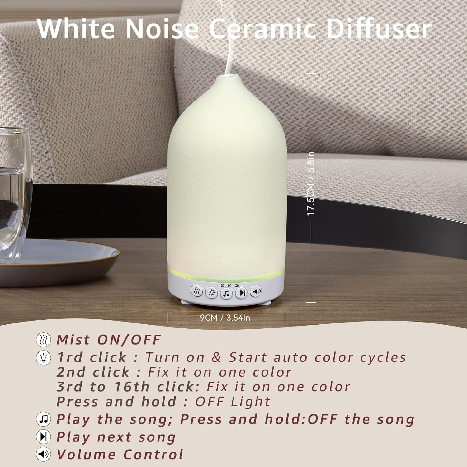 Giant Capability: Our sound machine has a big 200ml capability and might run for as much as 8 hours on a full tank of water.