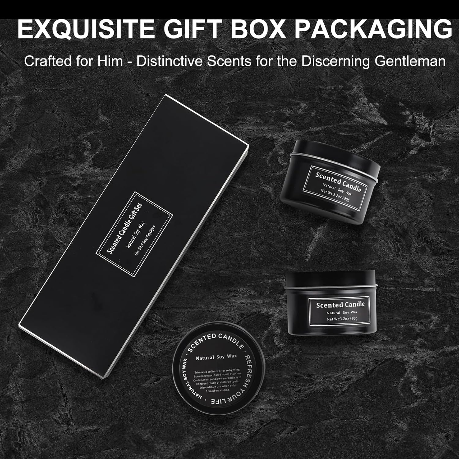[Enhance the Quality of Family Life] Past their perfume, scented candles may improve the fantastic thing about any area. Males who recognize a well-designed dwelling surroundings can incorporate scented candles into their dwelling decor. The black tinplate containers and minimalist design seamlessly combine right into a masculine aesthetic, elevating the general ambiance of the room.