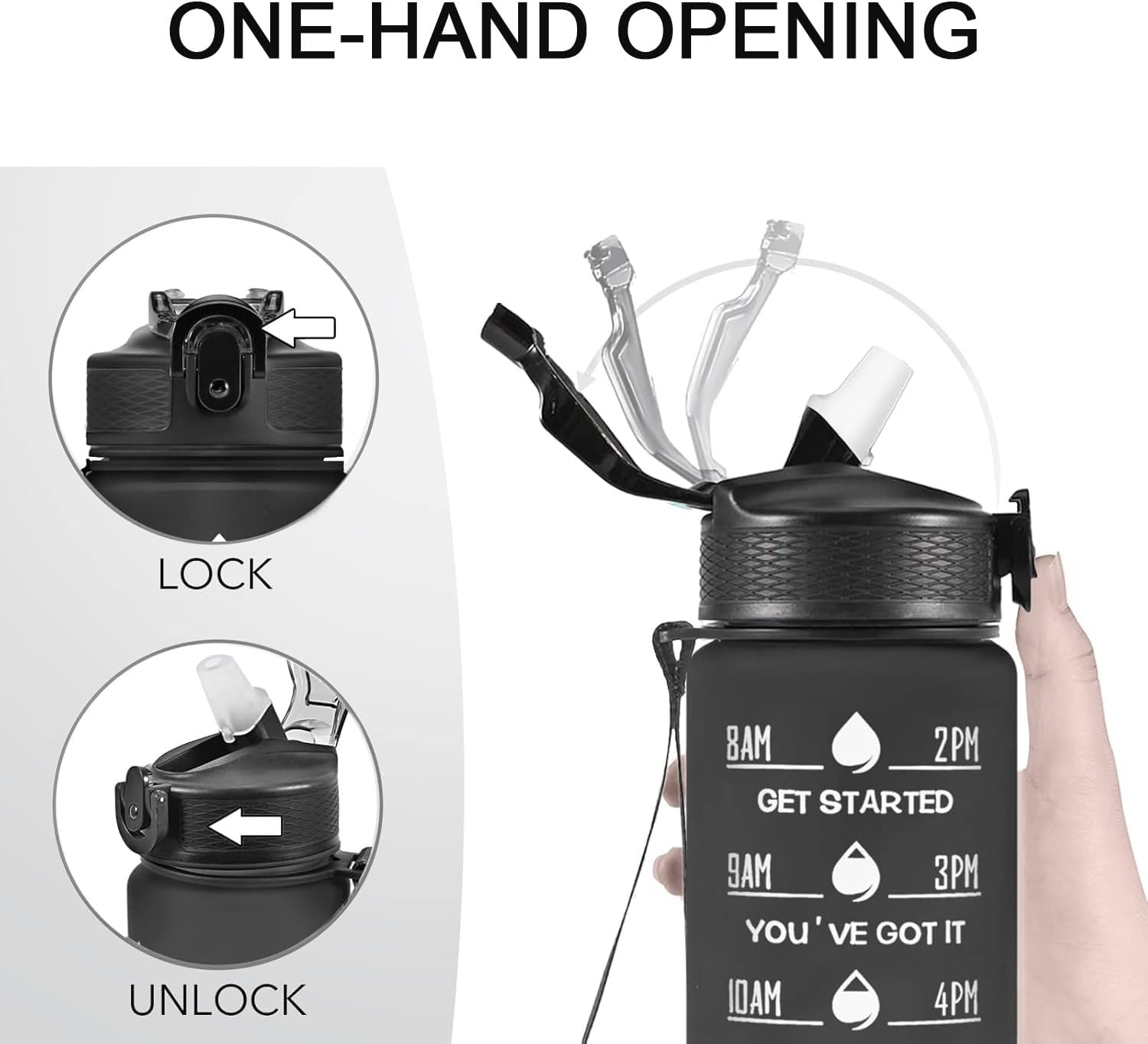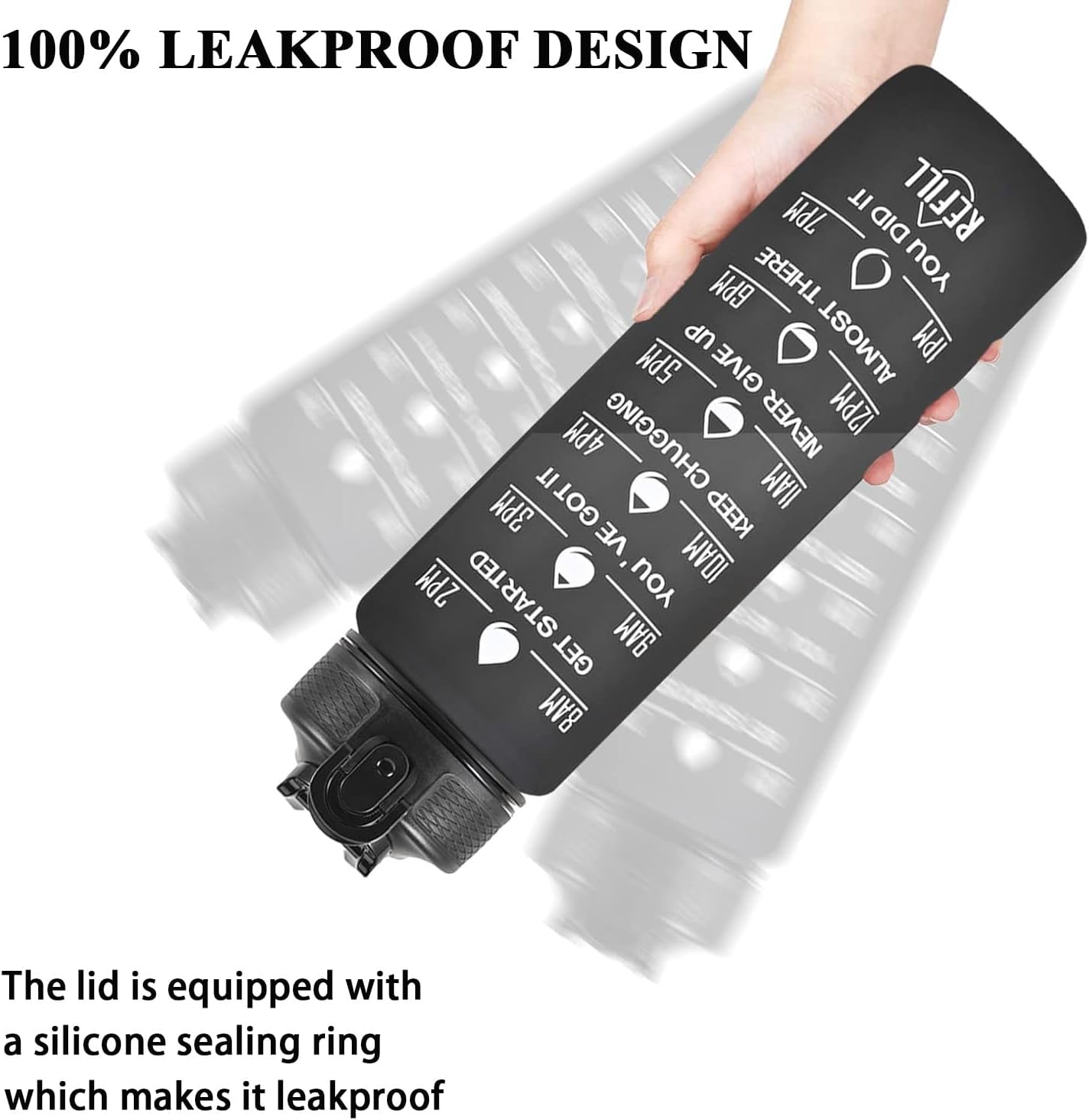 32 oz Water Bottle, Motivational Water Bottle with Time Marker, Sports Water Bottle With Strap, Leakproof & BPA Free Large Water Bottles for School, Gym, Travel, Outdoor, Black
