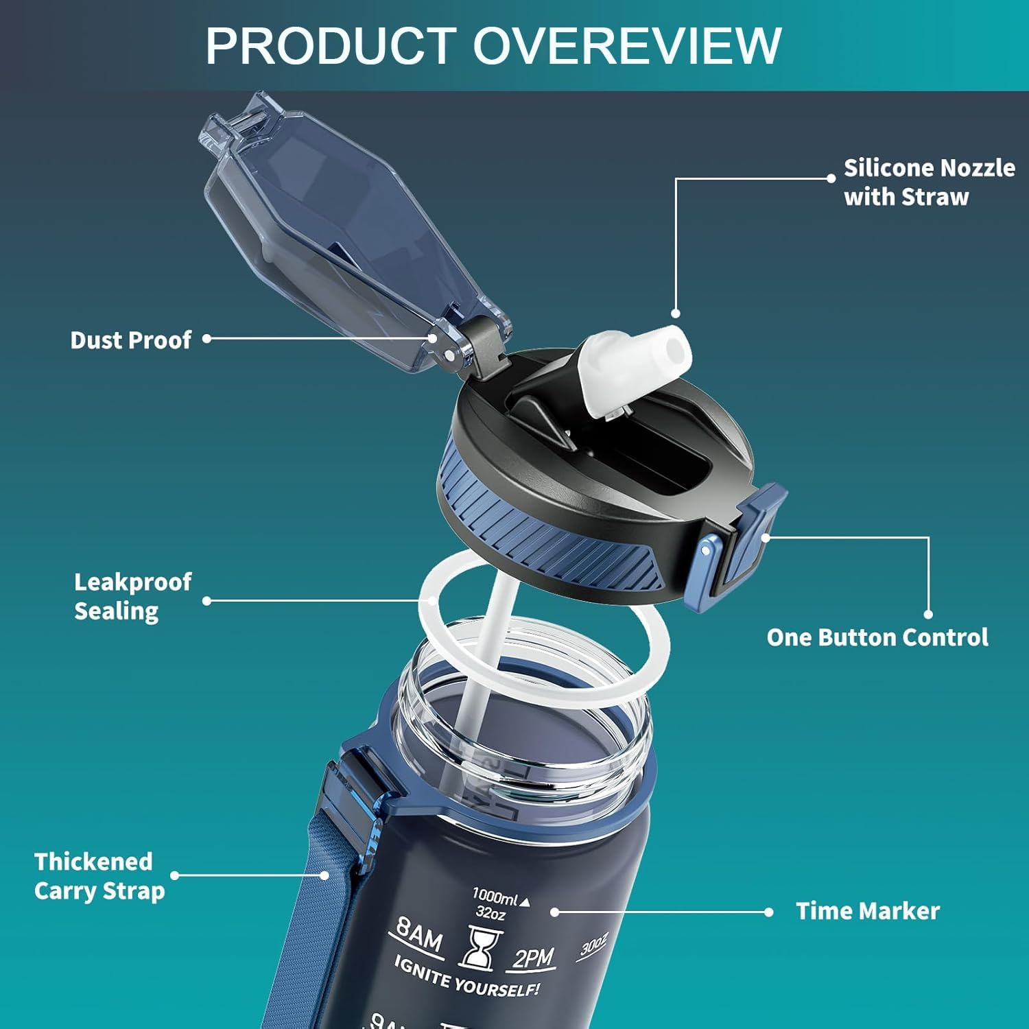 32oz Sturdy and Leakproof Water Bottles Motivational with Time Marker