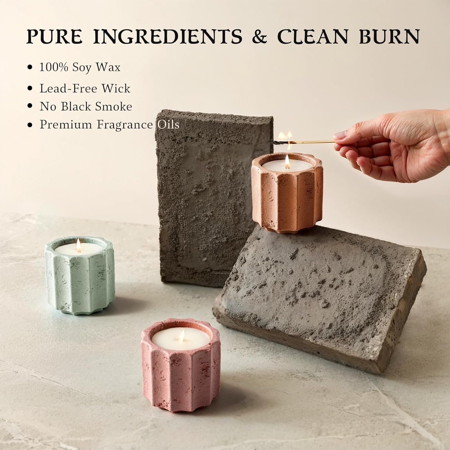 Premium Pure Soy Wax for a Clear & Smokeless Burn:Our candles are made with 100% soy wax and lead-free cotton wicks, providing a smokeless, even burn that’s each clear and non poisonous. The sturdy, heat-resistant cement jar enhances luxurious interiors whereas being eco-friendly and reusable. Indulge within the pure ambiance of natural candles that mix long-lasting perfume with elegant design—good for many who worth sustainability and magnificence in each element.