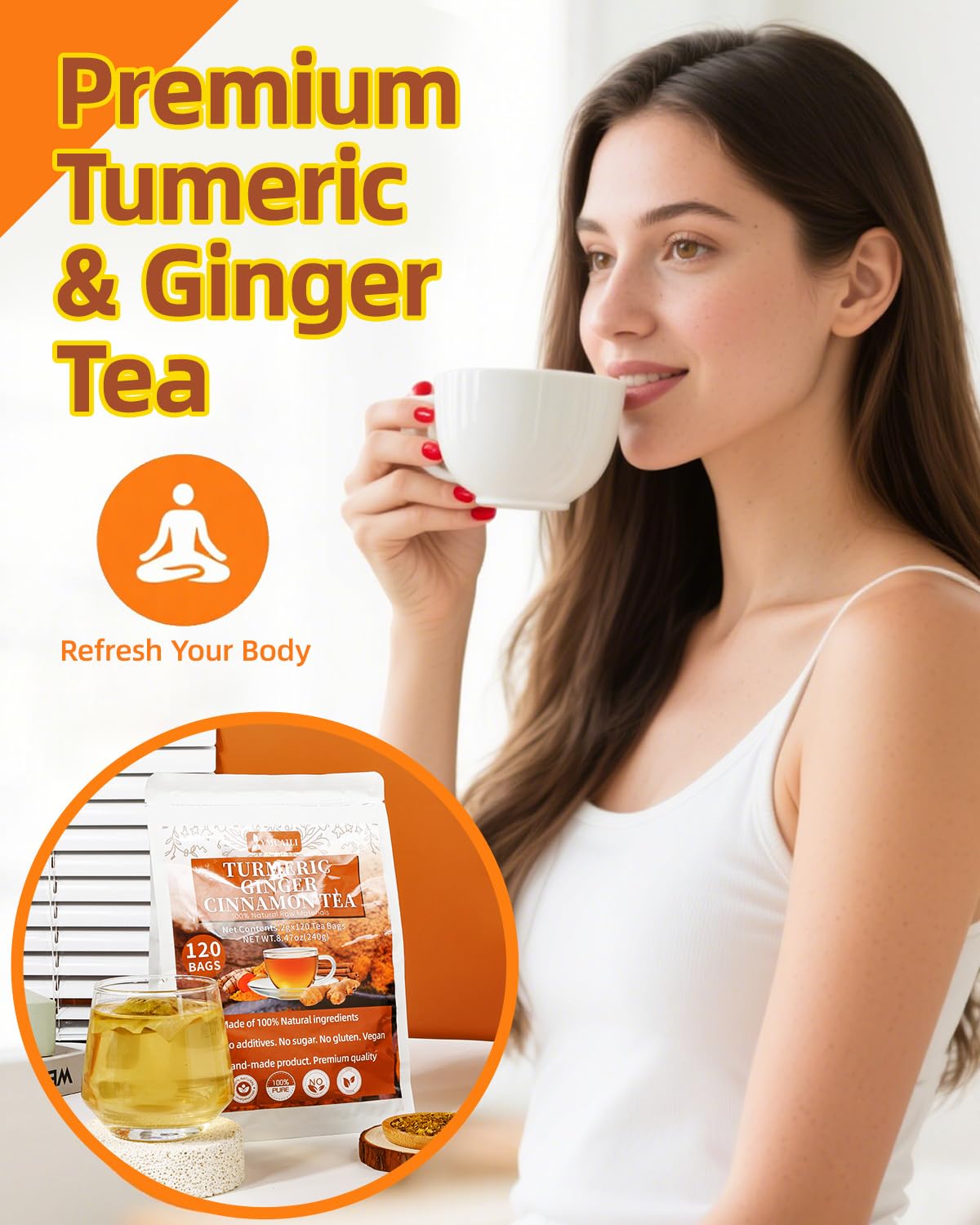 Be the first to review “60 Premium Turmeric Ginger Cinnamon Tea Bags, 100% Natural Herbal Blend, Supports Digestion & Immune Health, No Sugar, No Caffeine, No Additives, Vegan, Premium Ingredients”