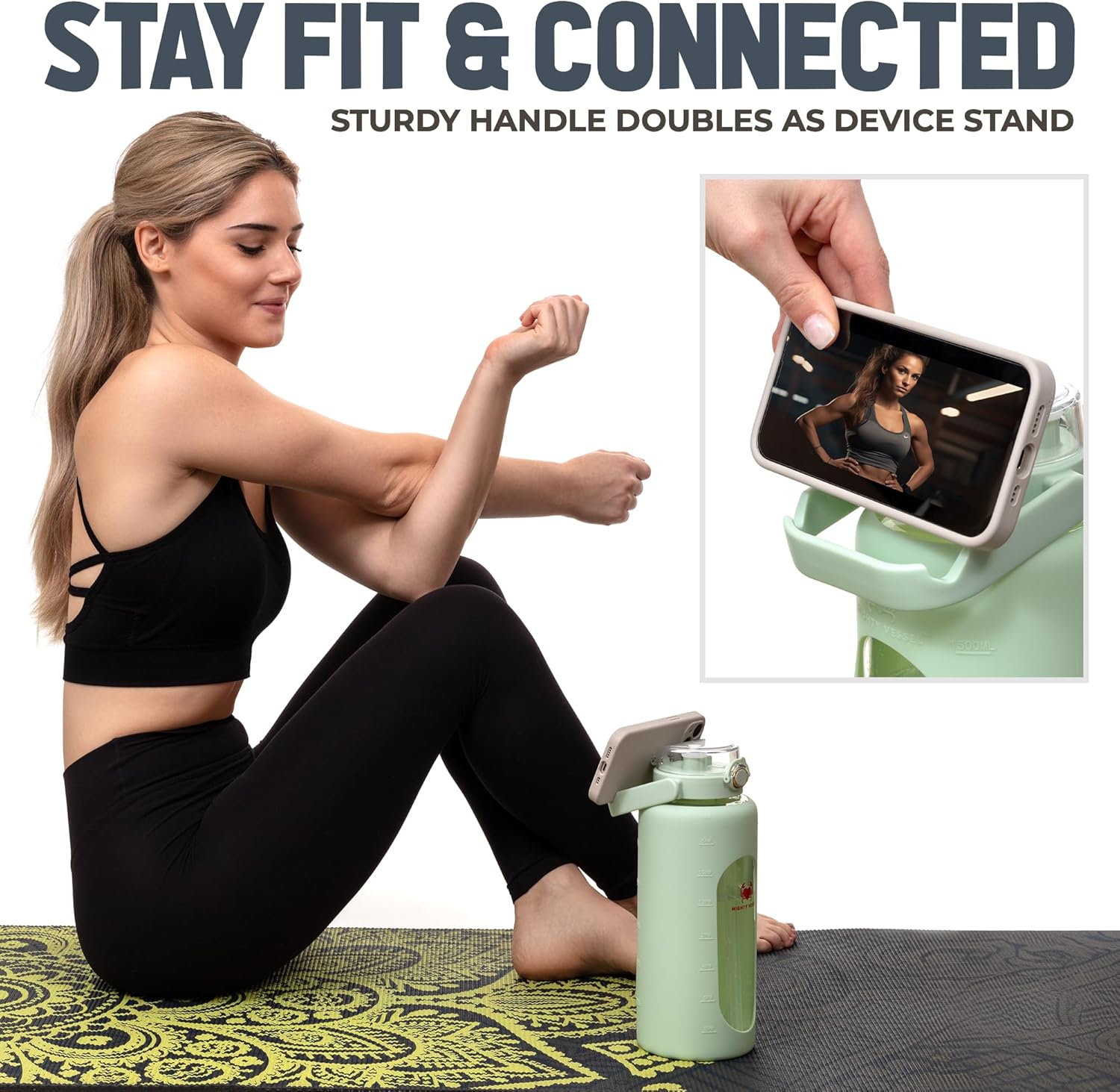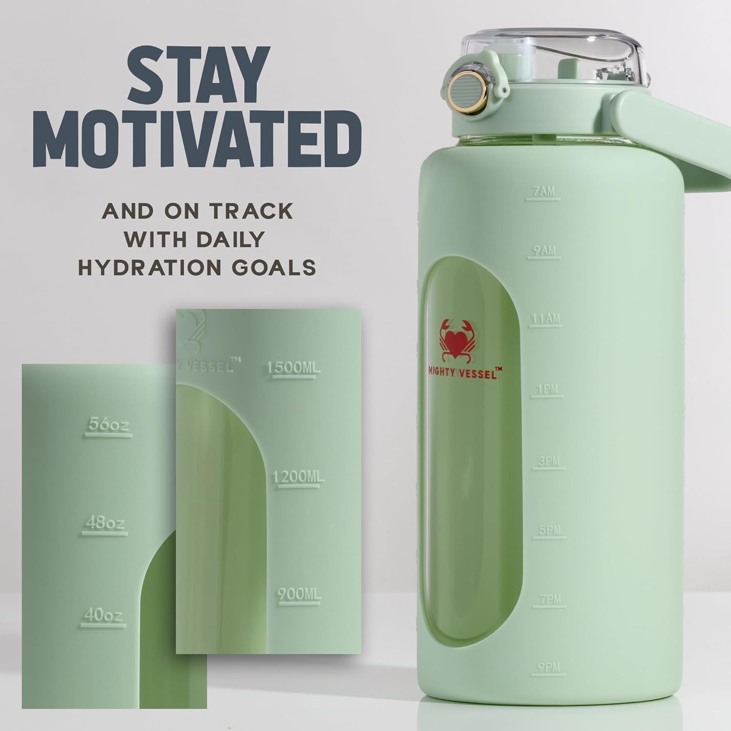 MIGHTY VESSEL 64 Oz Glass Water Bottles with Straw and Time Markers