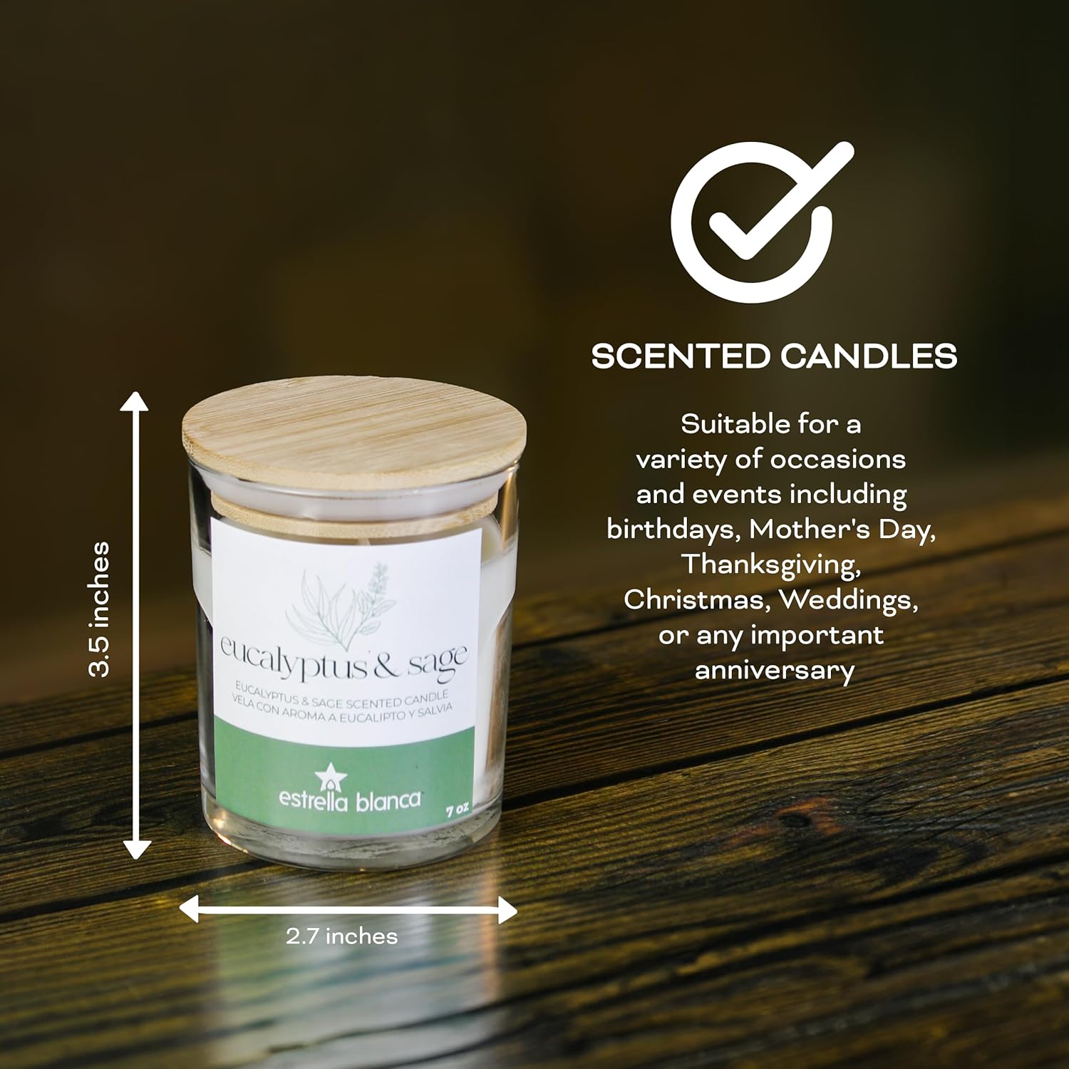 EUCALYPTUS AND SAGE SCENTED CANDLE: 7 oz, fill your own home with a pleasant aroma and loosen up in a peaceable environment, roughly 50 hours burning time