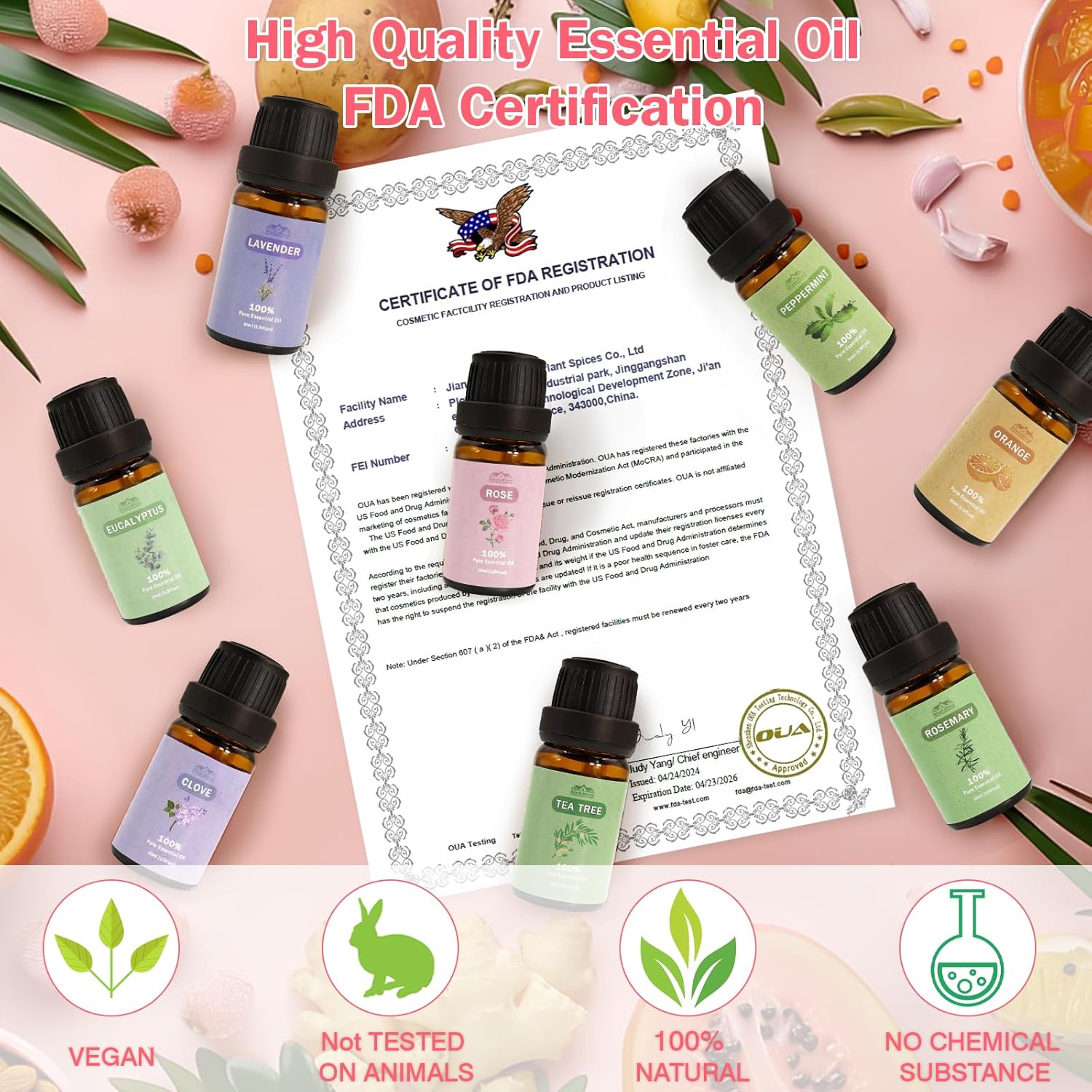 【Important oil set 】Contains Peppermint, Lavender, Eucalyptus, Tea Tree, Rose, Rosemary, Clove, and Orange. 8 well-liked important oil scents so that you can select from to satisfy your completely different wants.