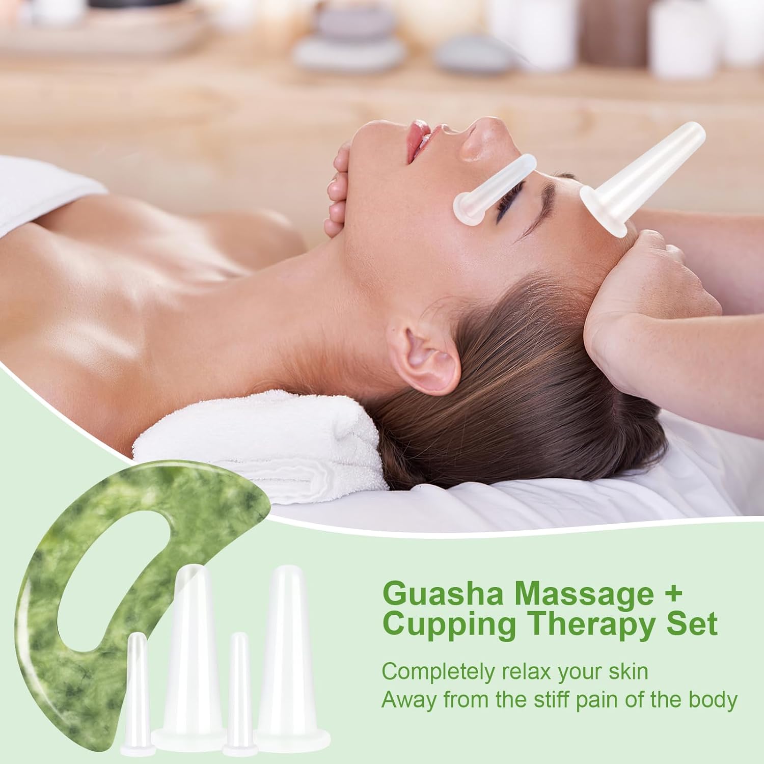 Jade Stone Scraping Therapeutic massage Instruments & 4Pcs Clear Therapeutic massage Cupping Set
