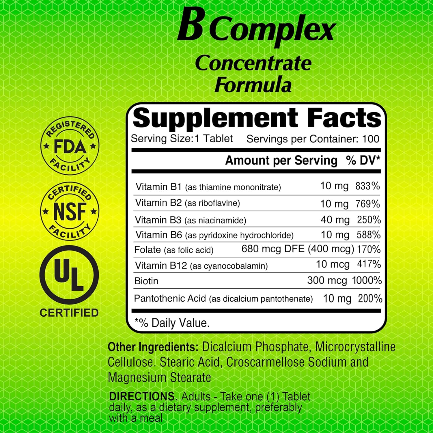 🌿B COMPLEX:Vitamin B1, B2, B3, B6, and B12 together with Folate and Pantothenic Acid.