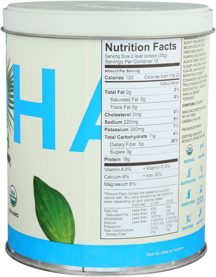 ALOHA Natural Plant-Based mostly Protein Powder, Vanilla, 18g Protein, USDA Licensed Natural, Gluten Free & Non-GMO, 525 Gm (Pack of 1)