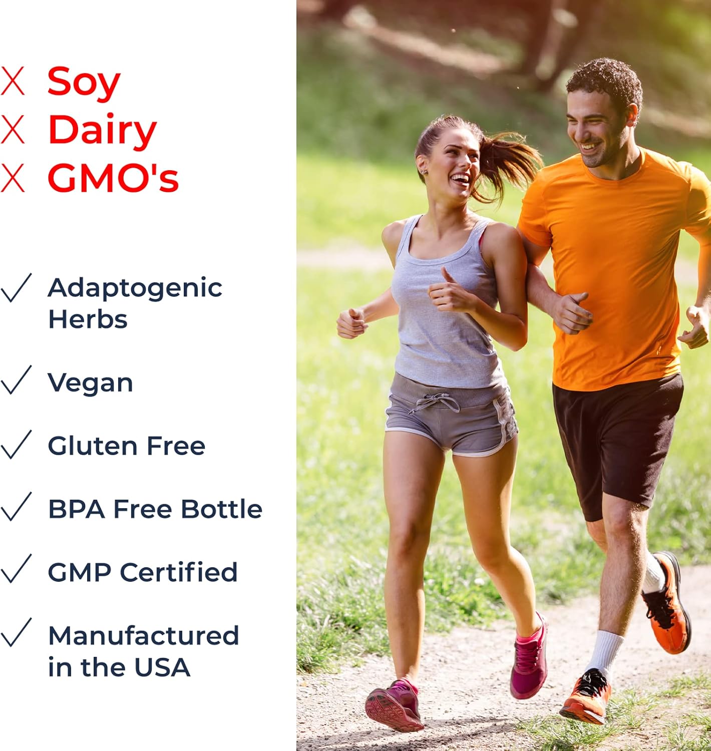 Components: Natural ashwagandha, natural spirulina, natural turmeric, natural flaxseed, natural echinacea, natural chlorella, natural schisandra, natural ginkgo, natural bilberry, natural celery, vegetable cellulose (capsule), magnesium stearate.