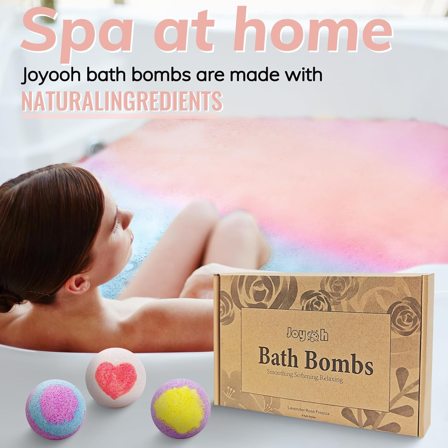 【Natural & Pure Bathtub Bombs】 Joyooh handmade tub bombs are created from pure substances. They assist to soak away your stress with a hand-selected mix of aromatic and soothing substances, offering a very good fizz and float. Pure pigments will not stain your tub.