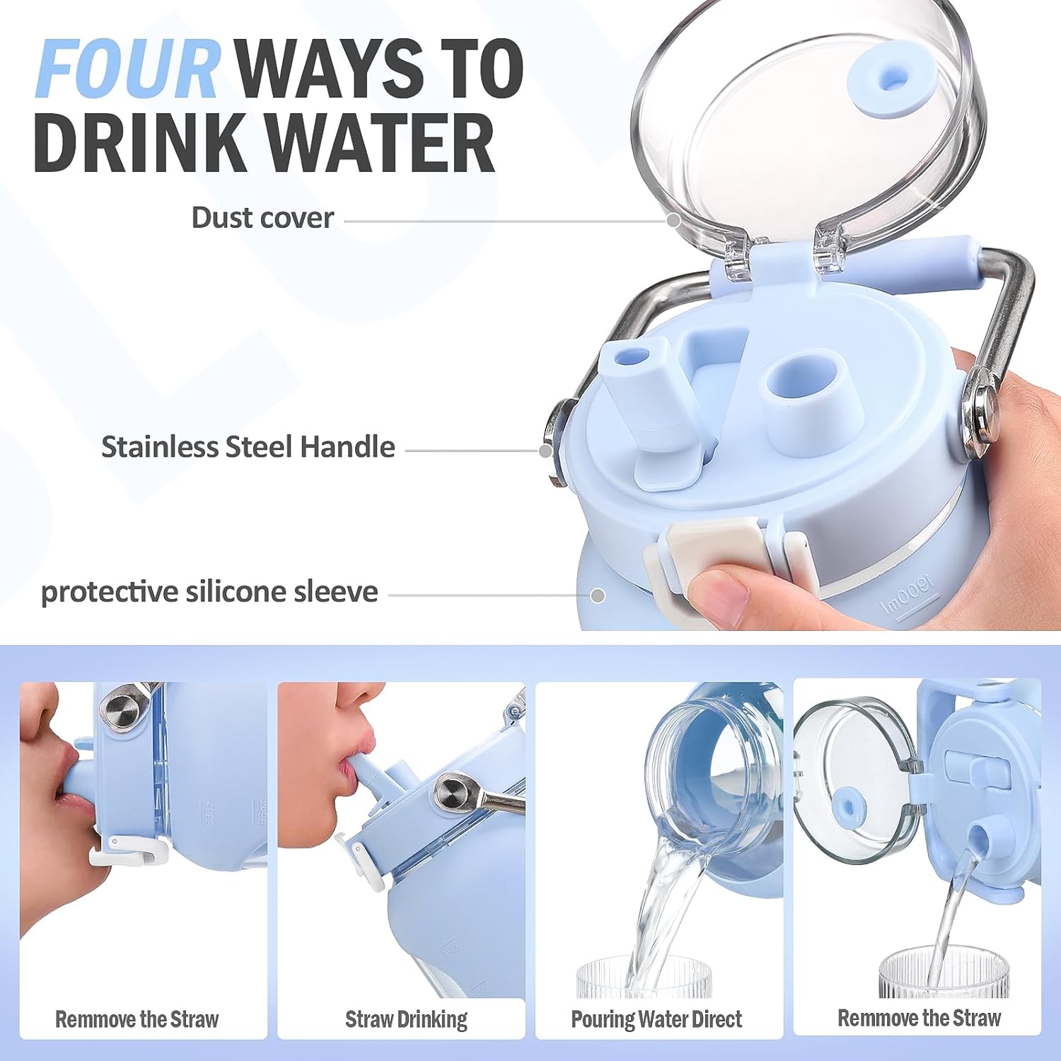 Twin Deal with Design – Our large water bottle encompasses a twin deal with system that units it aside as each a sensible water tumbler and a big water bottle. The built-in aspect deal with gives a snug grip for straightforward carrying and maneuverability, which lets you maintain the ingesting bottle securely when you drink up. The highest deal with gives a further carrying choice, making the waterbottle straightforward to raise and transport, which gives further leverage, making it straightforward to seize and go.