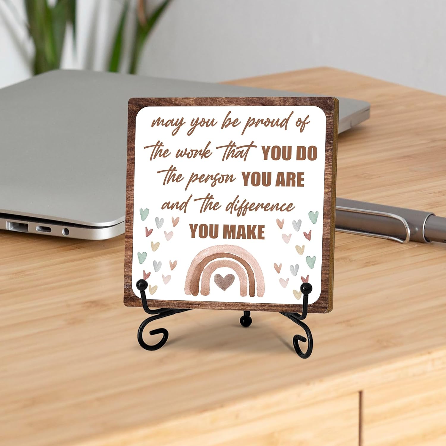 Boho Rainbow Wooden Sign, May You Be Proud Of The Work You Do Sign, Rustic Wooden Decor for Farmhouse, Tabletop, Shelf, Cheerful Gift, Home & Office Decorations, 5×5 inches-A37