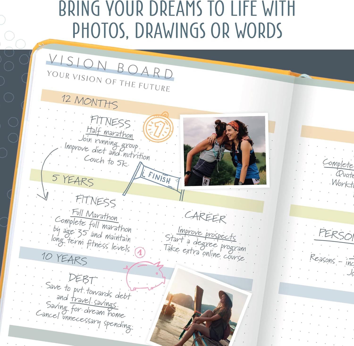 CREATE A VISION OF A LIFE YOU’LL LOVE – Use the imaginative and prescient boards to convey your desires to life with pictures, drawings or phrases. Set targets by specializing in the areas you most want to enhance on to attain it.