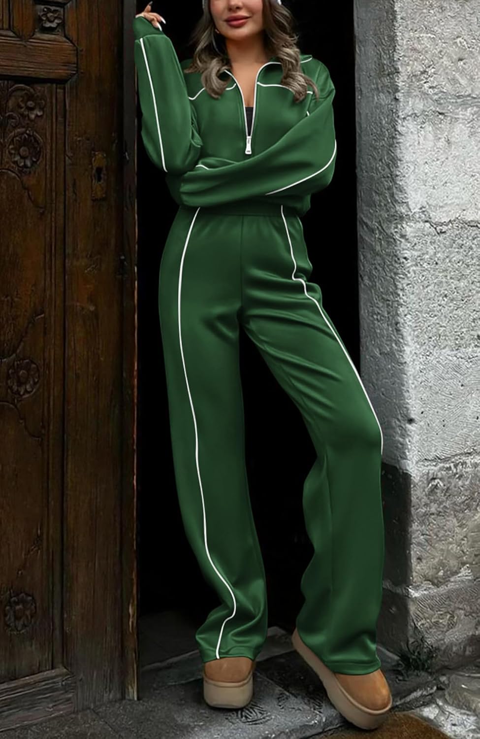 Girls’s Fall Style Matching Lounge SetsWomen’s Tracksuit Lengthy Sleeve Zip Up SweatshirtsWomens 2 Piece Fall Informal OutfitsWide Leg Elastic Excessive Waist Jogger Fits