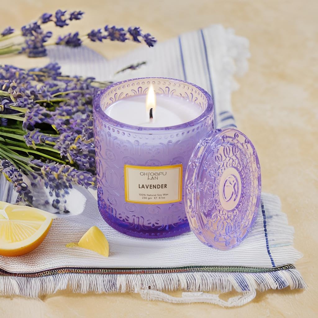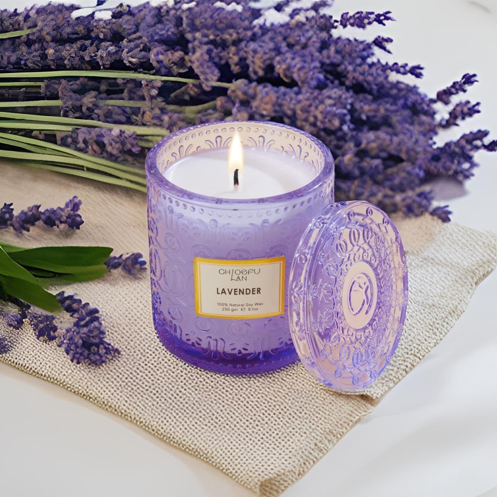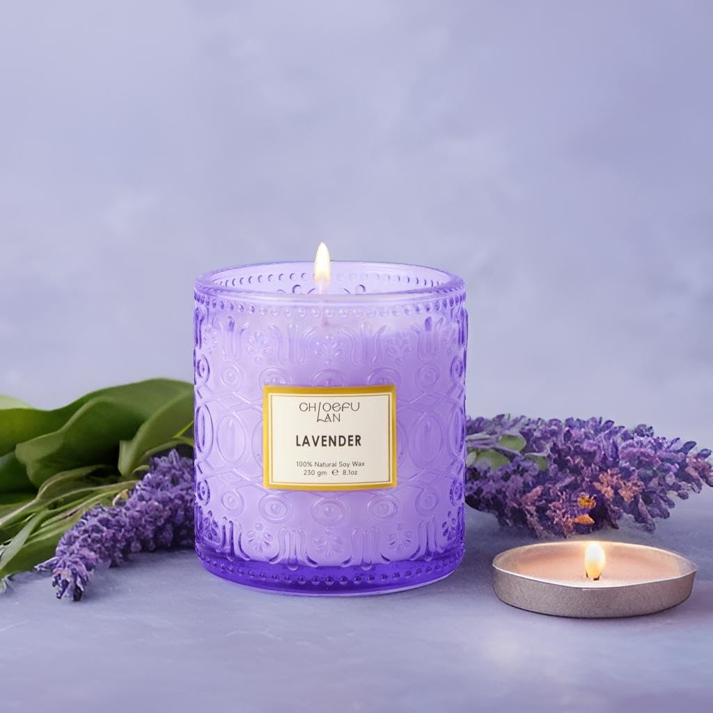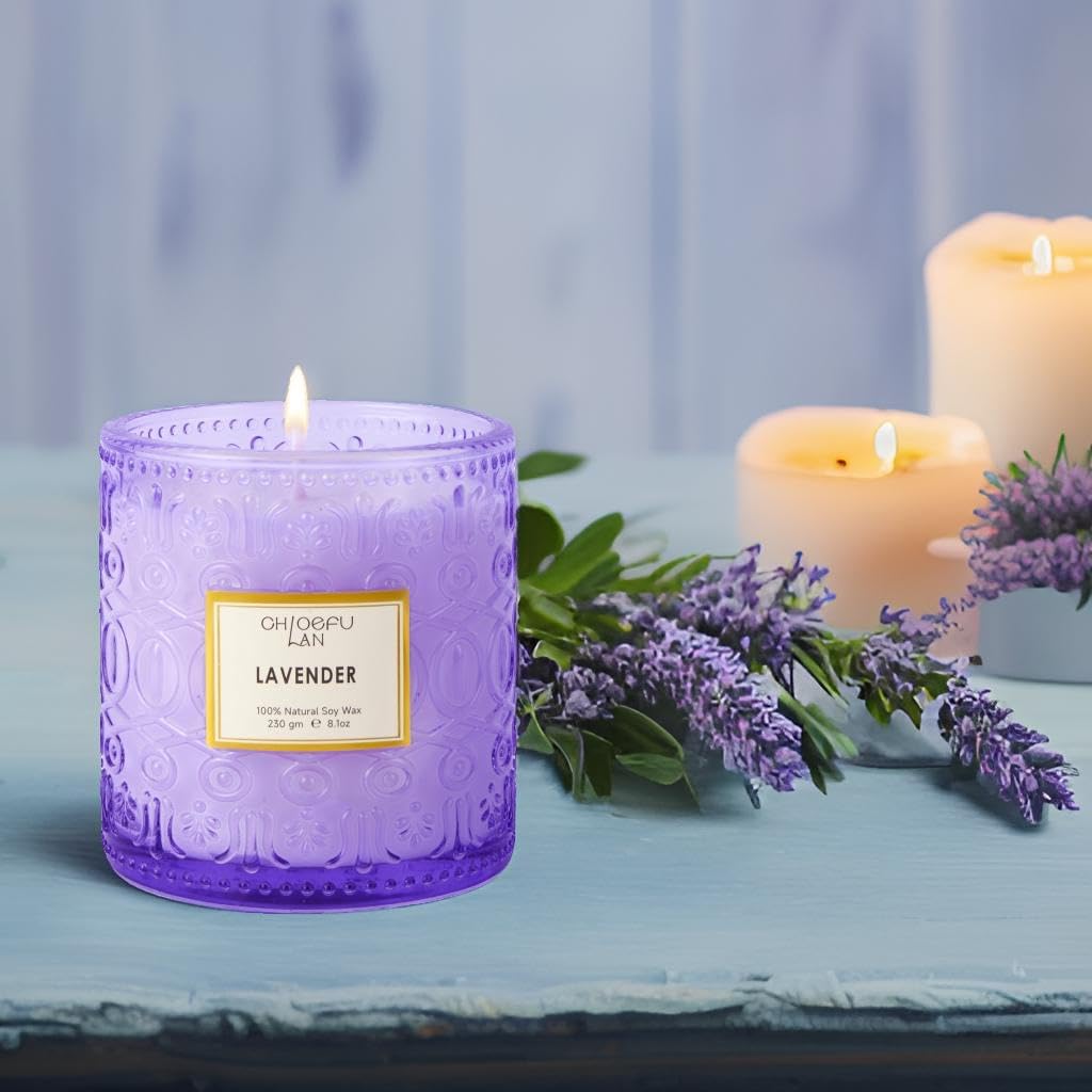 Chloefu LAN Lavender Candle, Candles for Women, Purple Candles, Scented Candle Gift, Nature Soy Wax, Home Decor, Mother Gifts, 55 Hours Long Burning, 8.1 oz