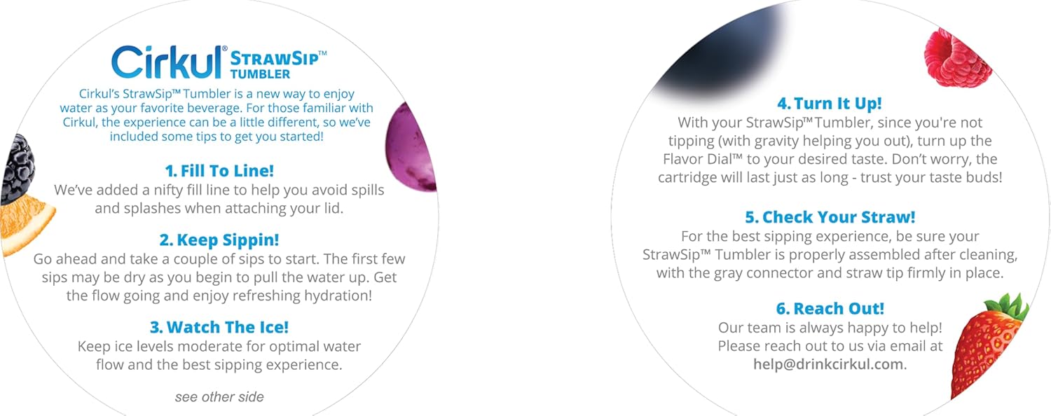 HAND WASH: Give your Cirkul Tumblers, Tumbler Lids, and Straws an intensive cleansing with heat, soapy water. This helps maintain them contemporary and prepared to your subsequent taste journey!