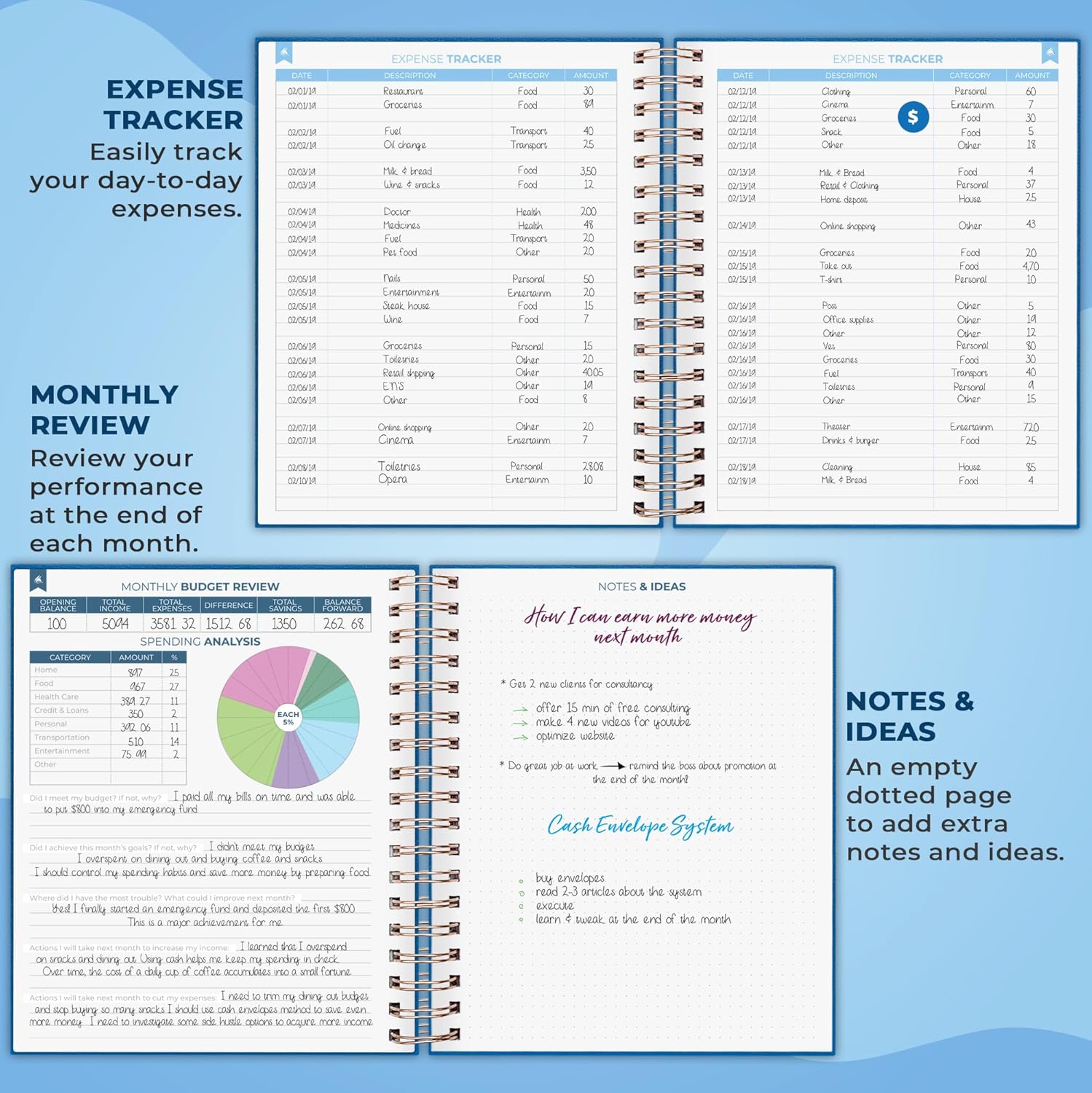 EASILY CONTROL YOUR SPENDING, DEBTS & SAVINGS – This cash planner is undated and covers 12 months. Each month encompasses a calendar, a price range plan, and an expense tracker. The budgeting planner additionally consists of 8 financial savings and 12 debt trackers.