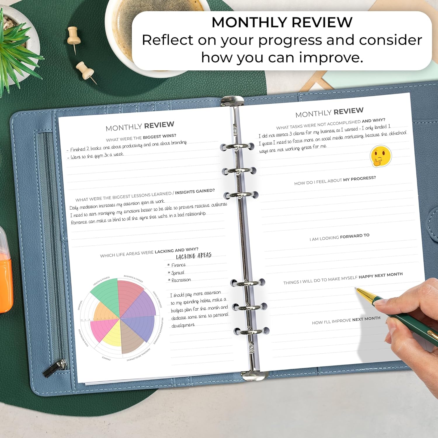 STAY FOCUSED WITH PREMIUM LAYOUTS & MATERIALS: The life planner has an eco-leahter cowl, thick 120gsm paper, and easy-to-open ring binding. Added options, similar to behavior trackers and common month-to-month evaluations, will assist you to enhance even quicker.