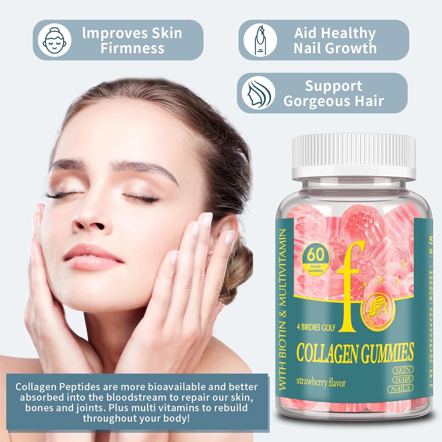 Collagen Gummies for Women Sugar Free, Hydrolyzed Collagen Peptides Gummies Type I, II, III, V, X with Biotin, Zinc Vitamins C A B D E for Skin Hair Nails, Bone