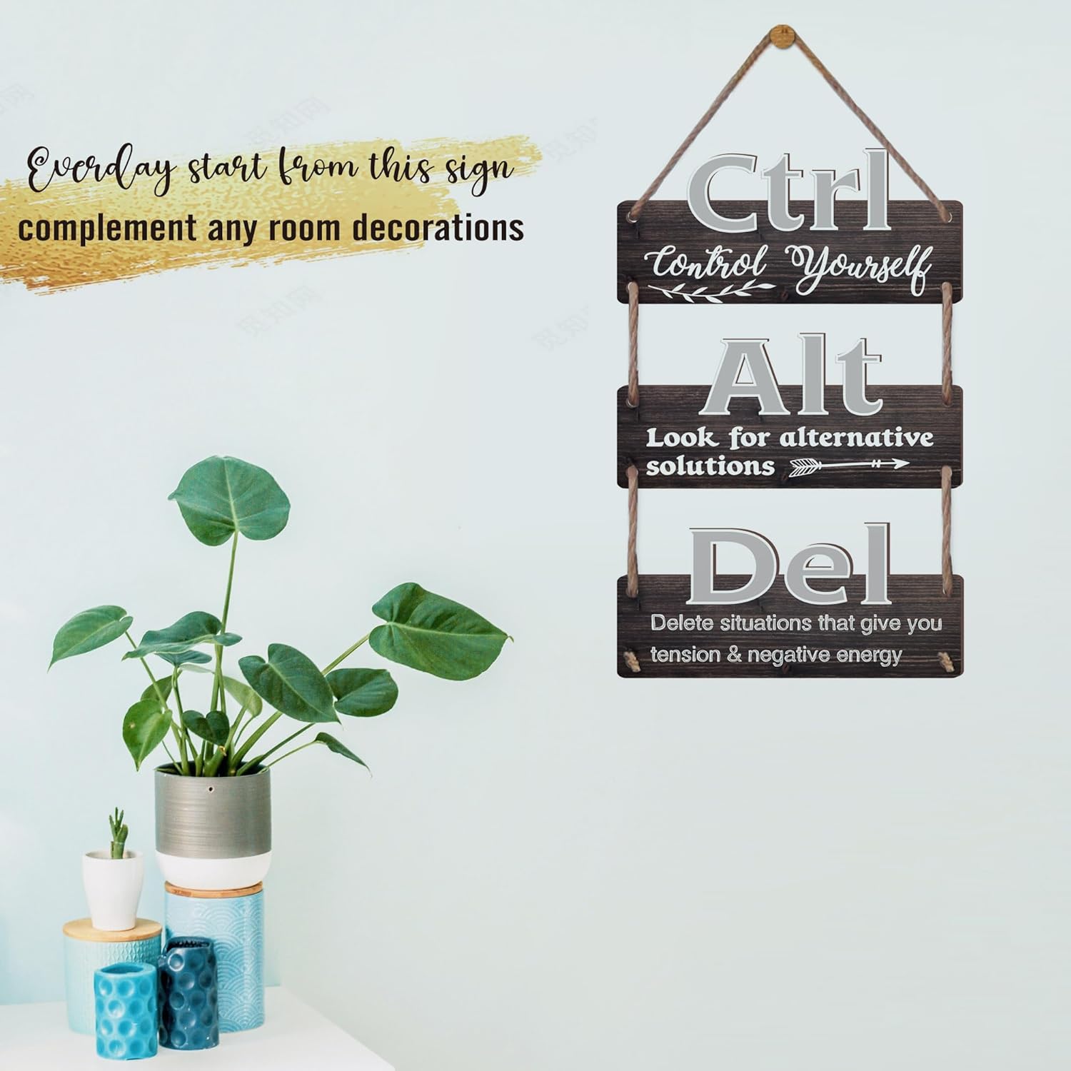 SOLID WOOD AND HEMP ROPED : Use strong wooden materials, clear UV printing on indicators. Minimize out “Ctl+Alt+Del” phrase, and 3pcs panels roped collectively by hemp wire. Elegant rustic & farmhouse type. Makes a high-grade new home, workplace motivational wall decor.