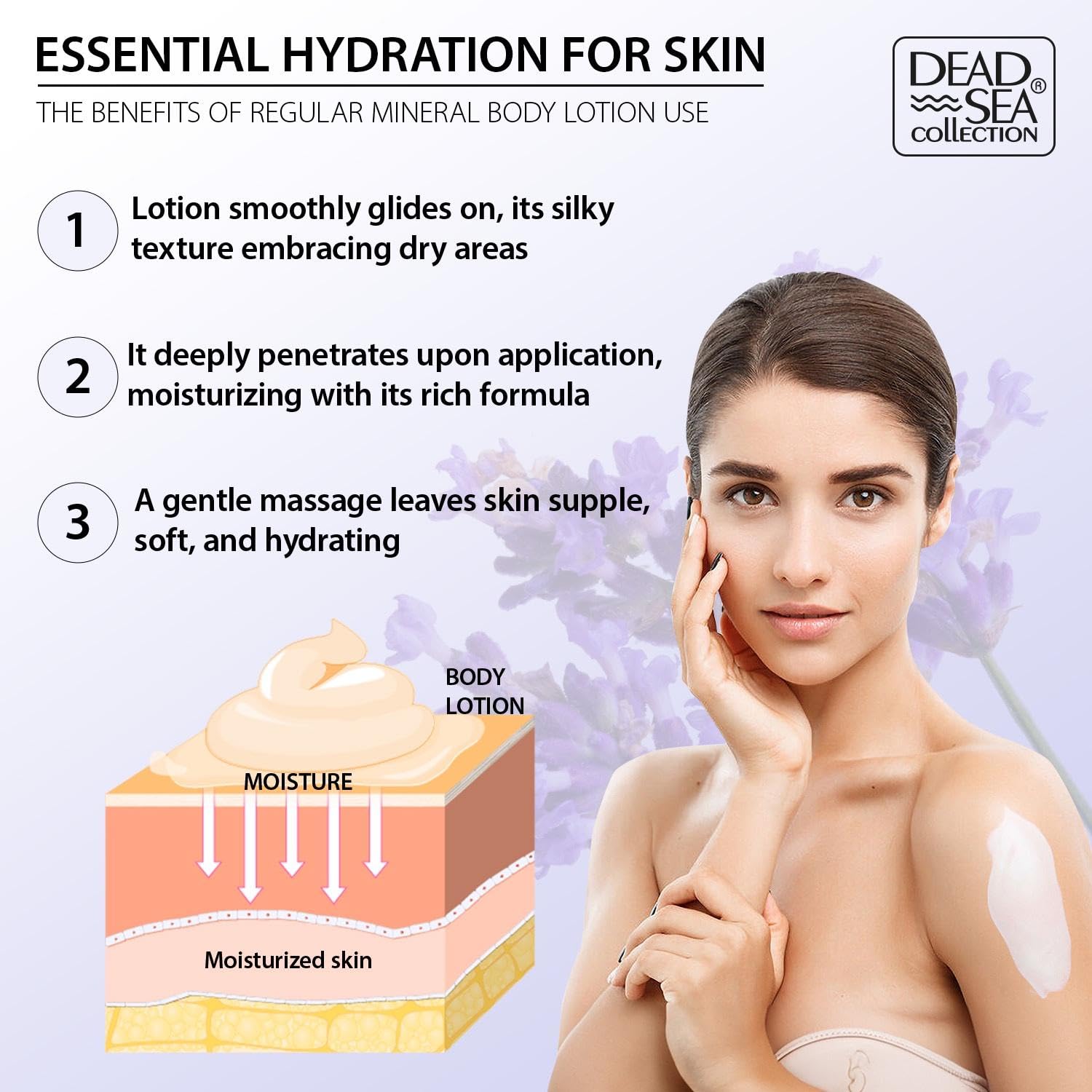 Intensive Hydration – Lifeless Sea Assortment lavender physique lotion, a potent moisturizer for dry pores and skin, affords deep hydration for lasting consolation.