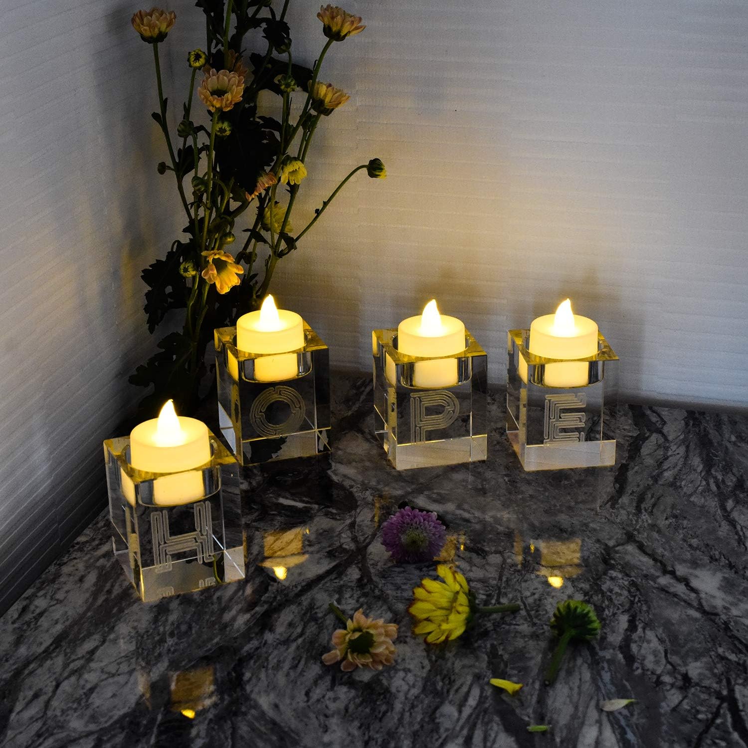 Be the first to review “Decorative Word Sign Hope Cube Crystal Candle Holder Set of 4 – Solid Square Clear Glass Table Centerpiece – Elegant Votive Tealight Candlestick for Wedding & Home Decoration”