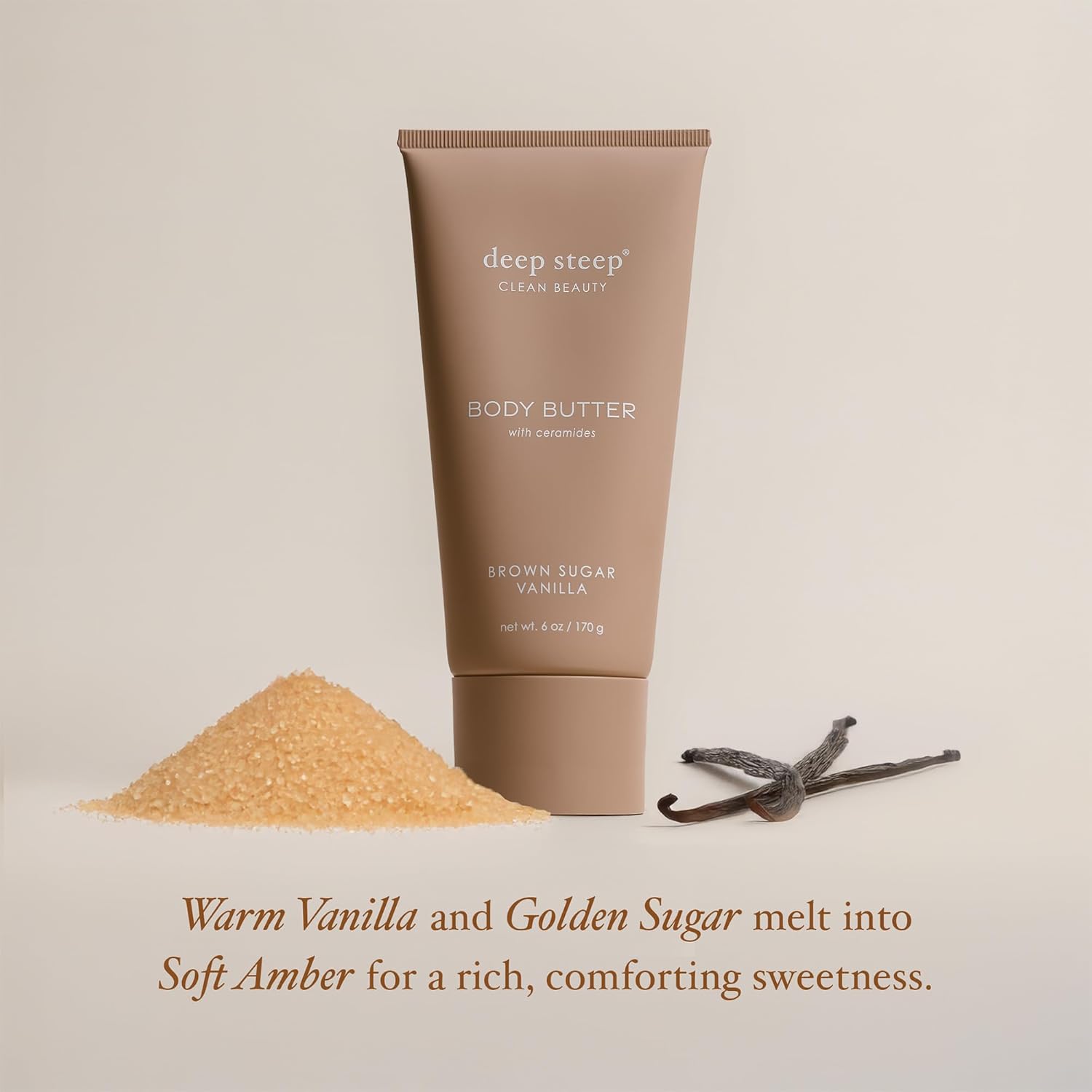 Deep Steep Body Butter, 6 oz – Rich Moisturizer with Ceramides, Coconut Oil, Argan Oil & Aloe Vera – Vegan, Clean Beauty, Smooth & Hydrated Skin (6 Ounces, Brown Sugar Vanilla)