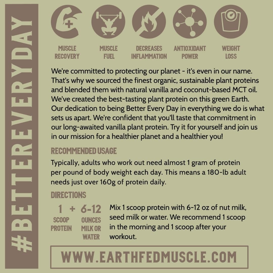Be the first to review “Earth Fed Muscle Common Ground Vanilla Vegan Protein Powder – Organic Plant Based Protein Powder with Pea, Hemp, Goji, MCT, Soy-Free, Gluten-Free, Vegan Protein for Women & Men – 30 Servings”