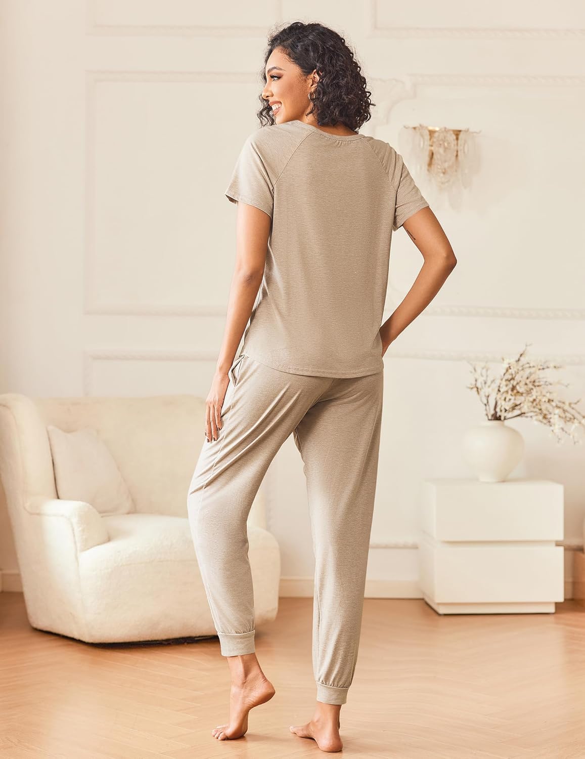 Womens 2 Piece Pajama Units Quick Sleeve High and Joggers Pants Sleepwear