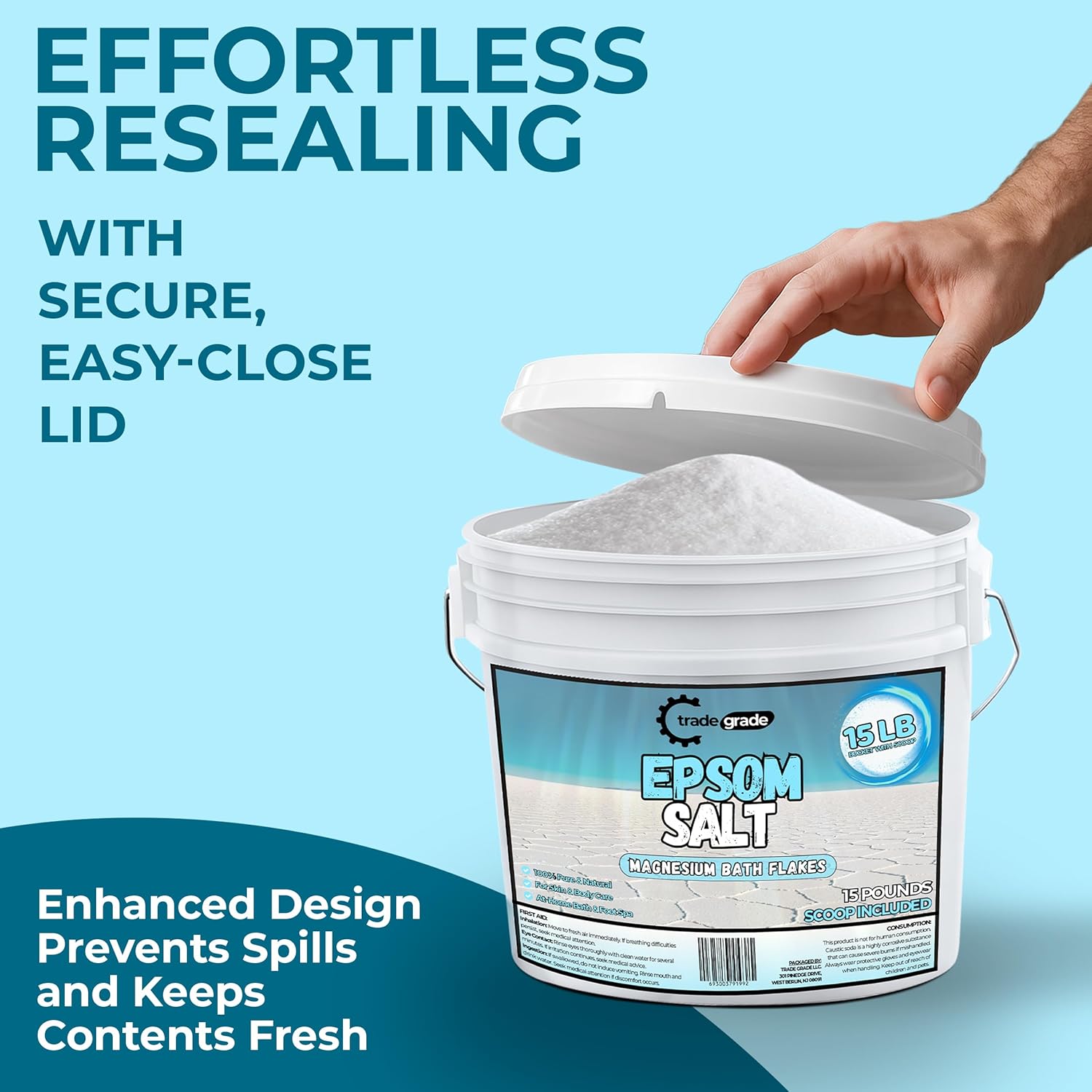 Resealable Bulk Format – Hold a container close to the bathtub. Magnesium salt is available in bulk-capacity packaging that seals contemporary and features a scoop for constant dosing in baths or basins.