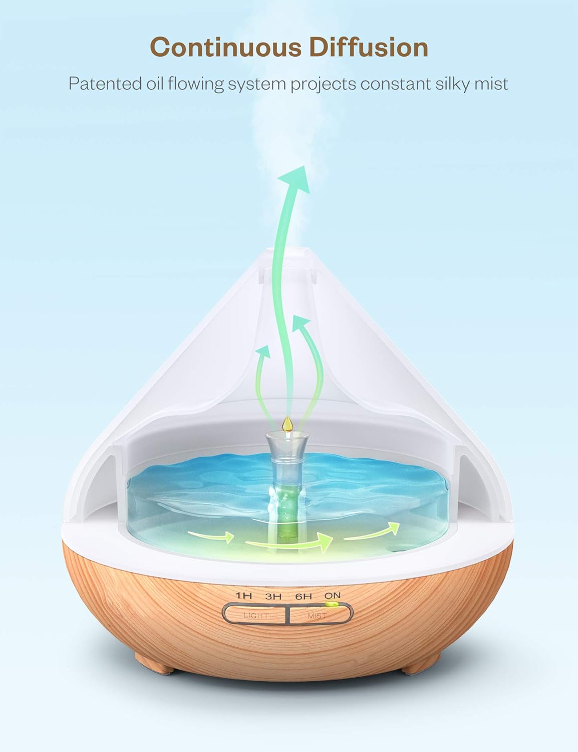 Diffuser with 12x5ml Important Oil BPA-free Supplies 1h, 3h, 6h Timer Setting 7 LED Mild Modes Ultrasonic Design