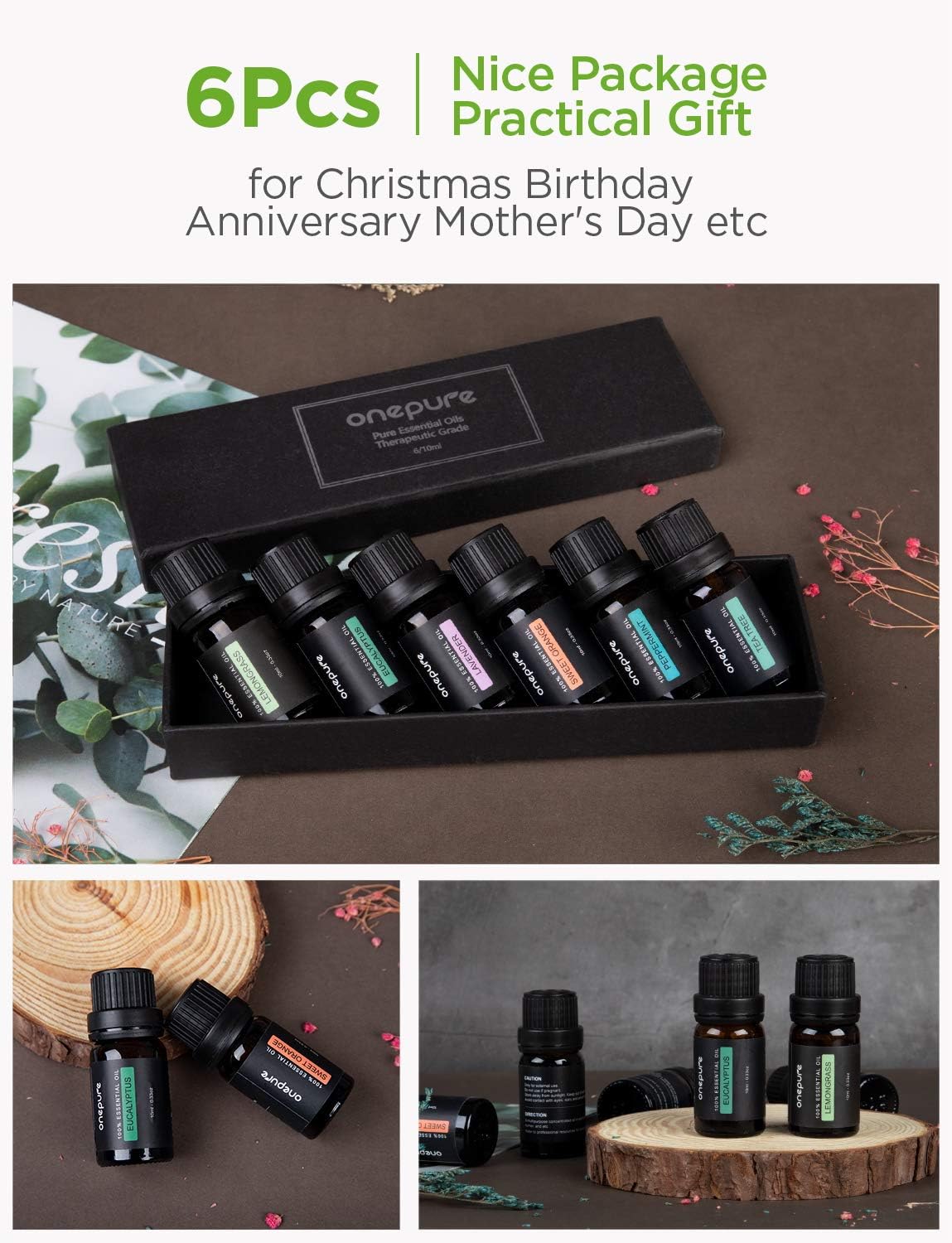Essential Oils, 6 x 10ml Essential Oils Gift Set for Diffuser Humidifier Massage Aromatherapy (Lavender, Tea Tree, Eucalyptus, Lemongrass, Orange, Peppermint)