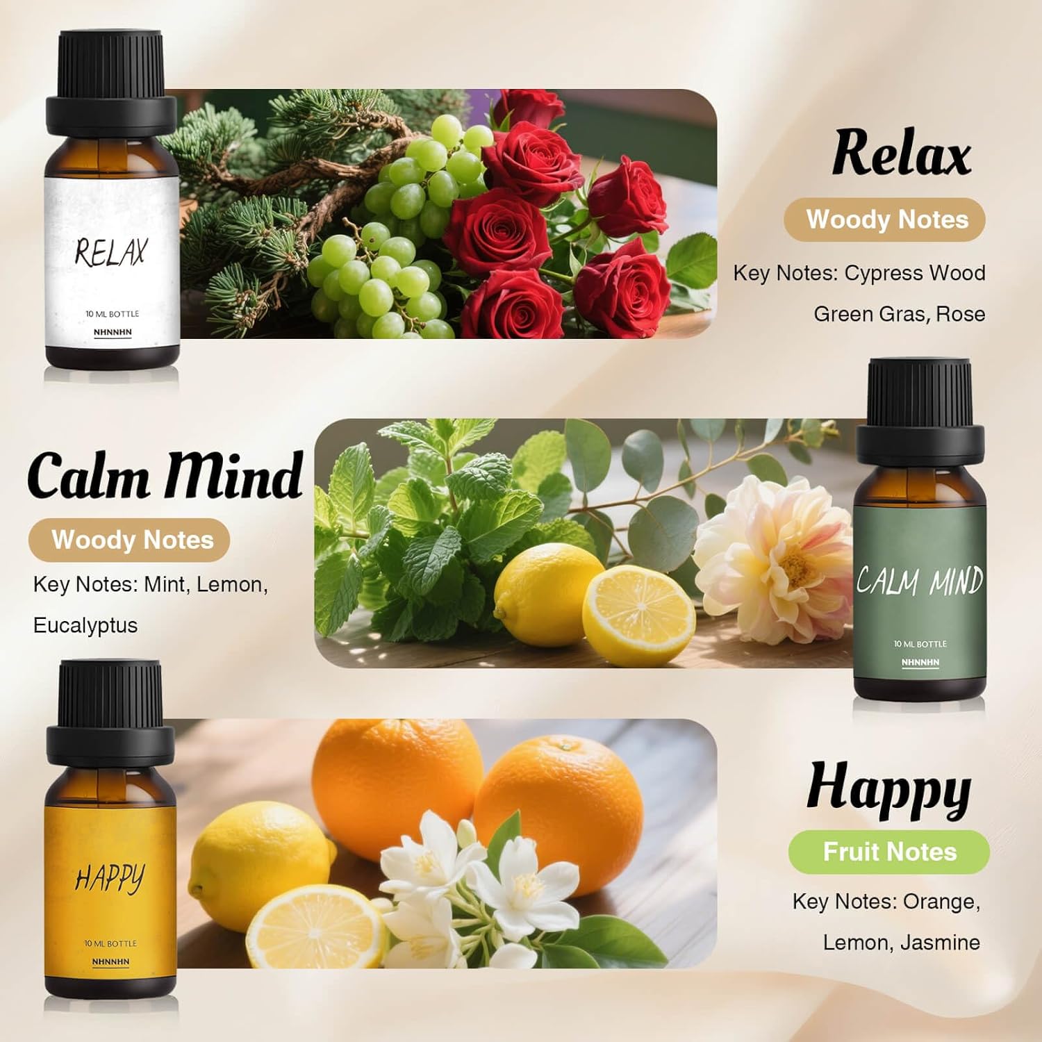 Important Oils Set for Diffusers for House, NHNNHN Pure Aromatherapy Diffuser Oil with Calm Thoughts, Candy Dream, Joyful, Breeze, Chill out, Temper for Aromatherapy, Humidifiers, 6x10ml