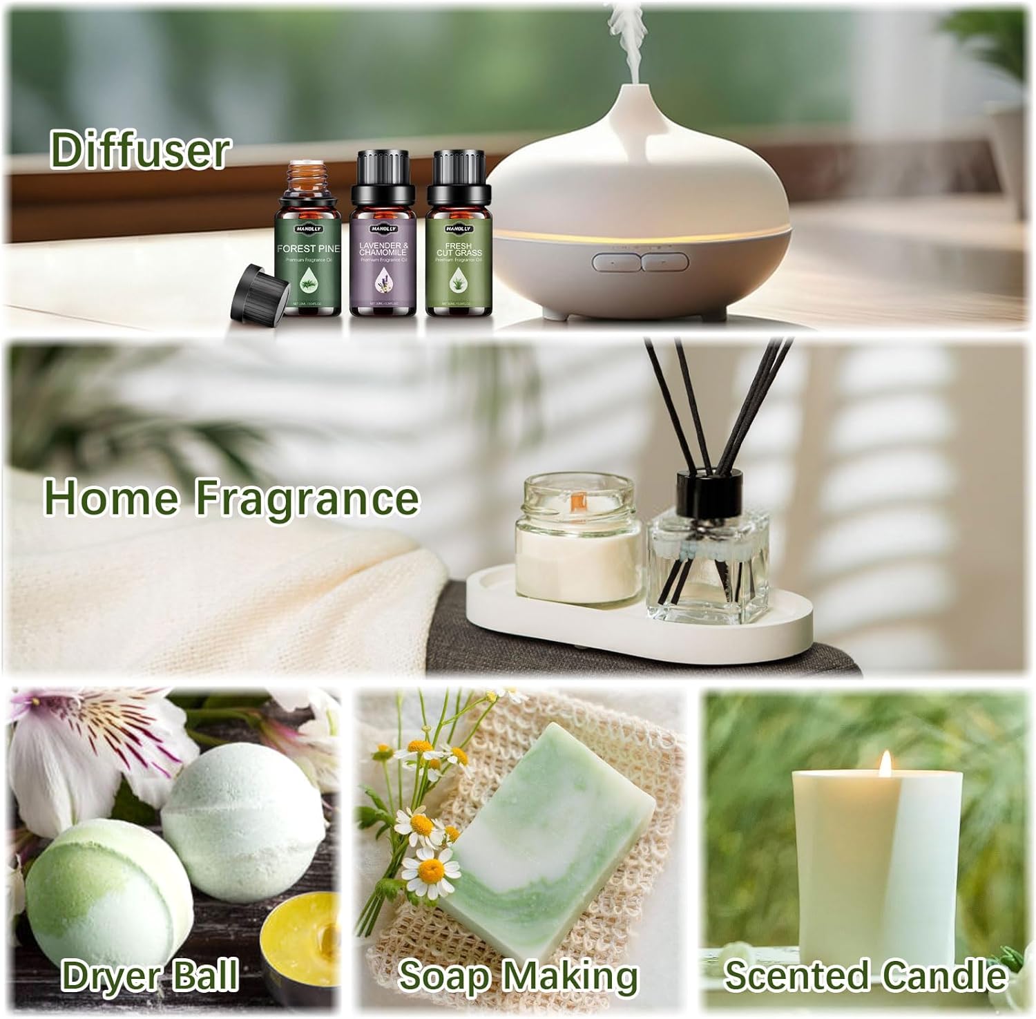 Be the first to review “Essential Oils Set, Nature Scents Fragrance Oil Aromatherapy Essential Oils Kit for Diffuser (6x10ML) Sandalwood &Rose, Bamboo, Rain, Lavender &Chamomile, Fresh Cut Grass, Forest Pine Oil”