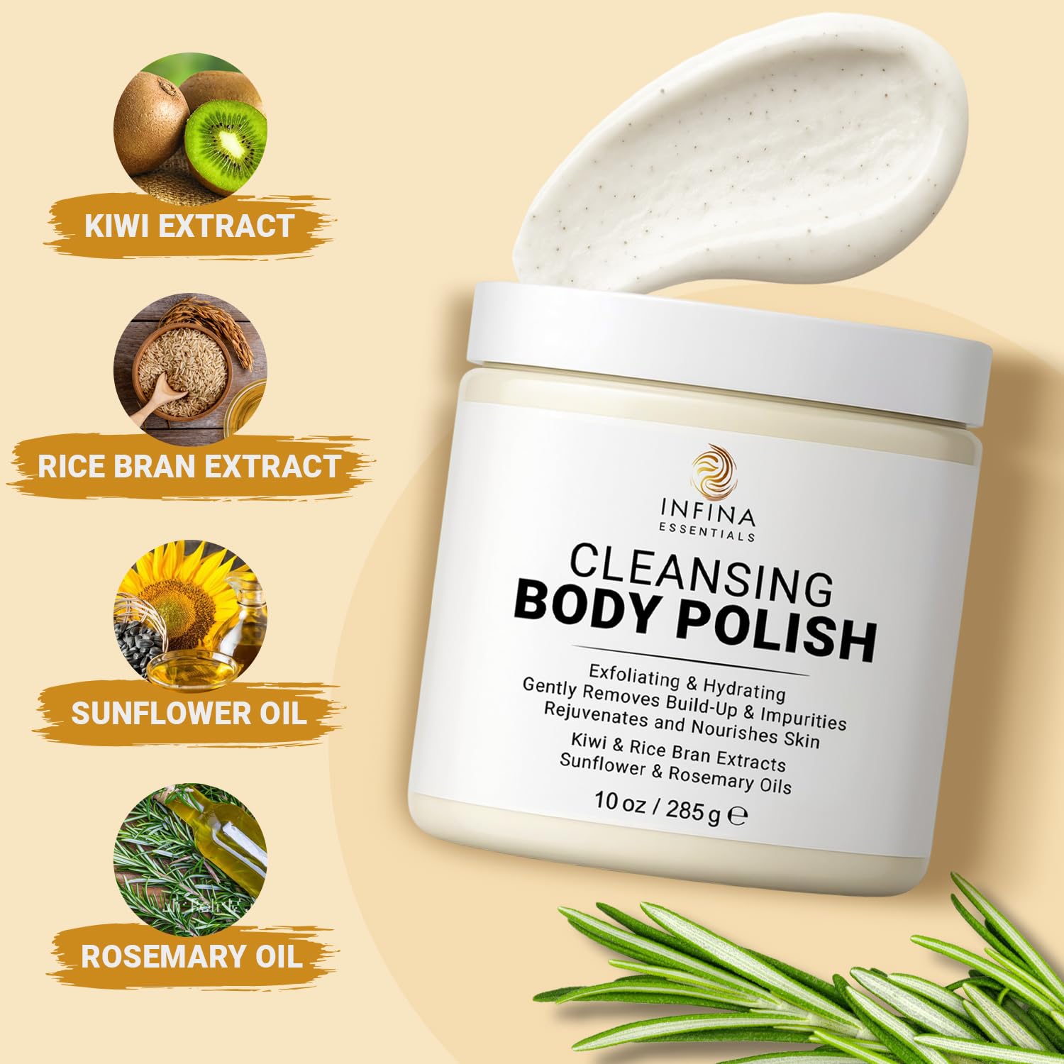 ✅Physique Polish for Clean Refreshed Pores and skin: Moisturizing mild physique exfoliator scrub that helps take away buildup, impurities and flaky patches, whereas leaving pores and skin feeling gentle, cleansed, and naturally radiant