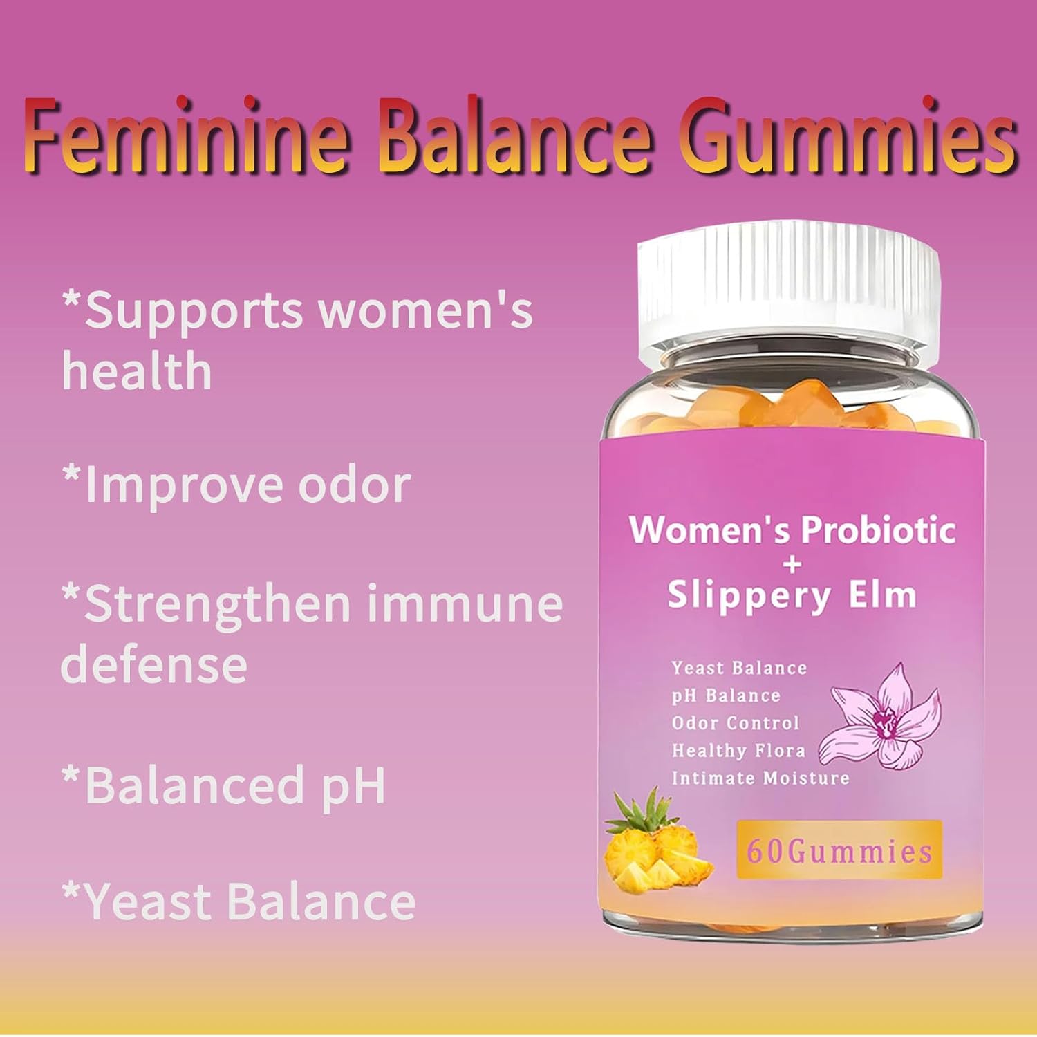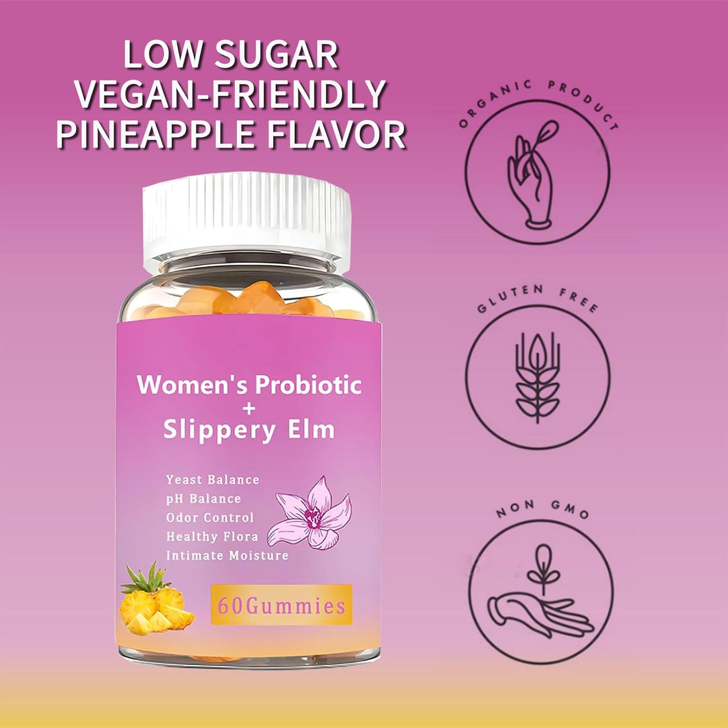 Feminine Probiotics Gummies, Women’s Probiotic+Slippery Elm, 2 in 1 Gummies, Pineapple Probiotics for Women (60 Gummies)