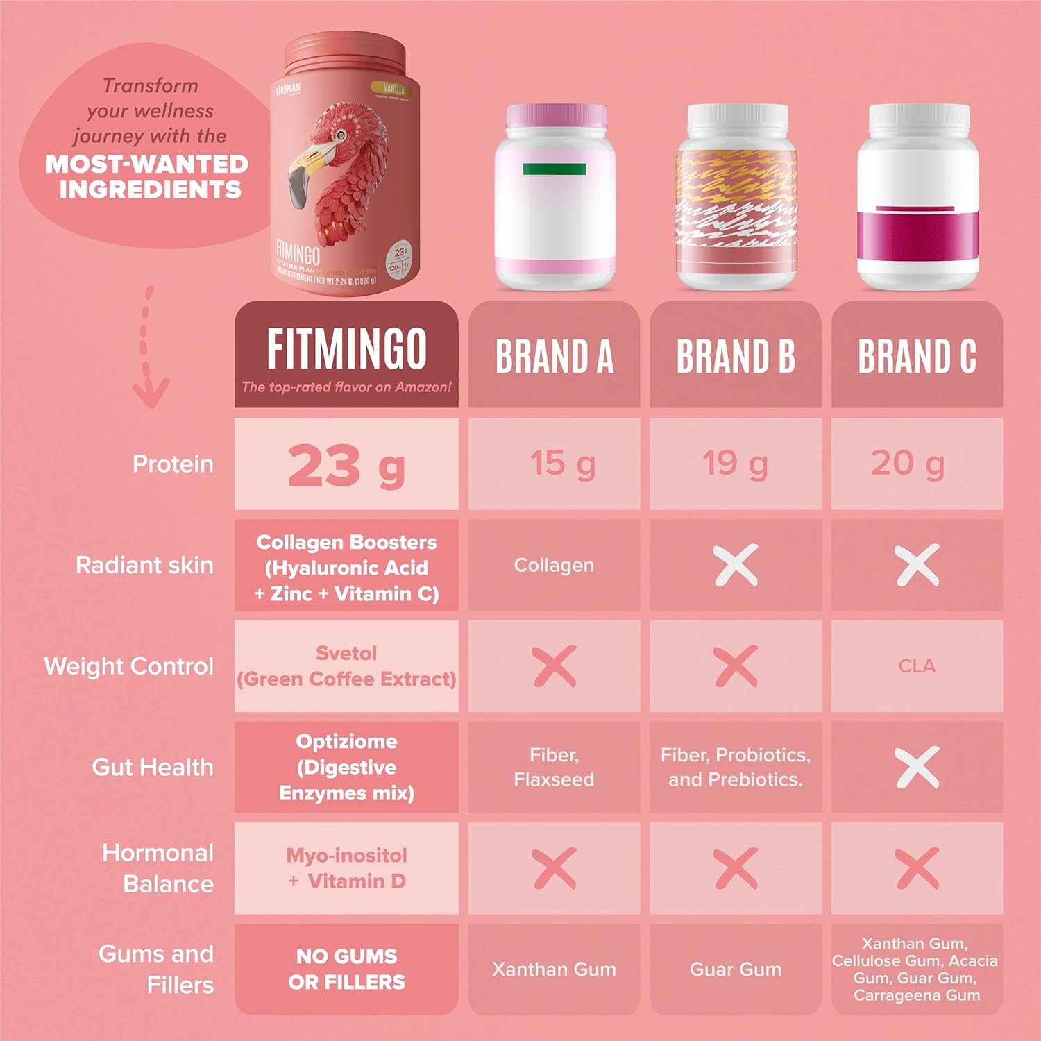 Fitmingo Vegan Protein Powder with Inositol, Collagen Boosters, Hyaluronic Acid and Vitamins | Low Carb, Dairy Free, Lactose Free, Low Calorie | 23g Plant Based Vanilla Protein Powder