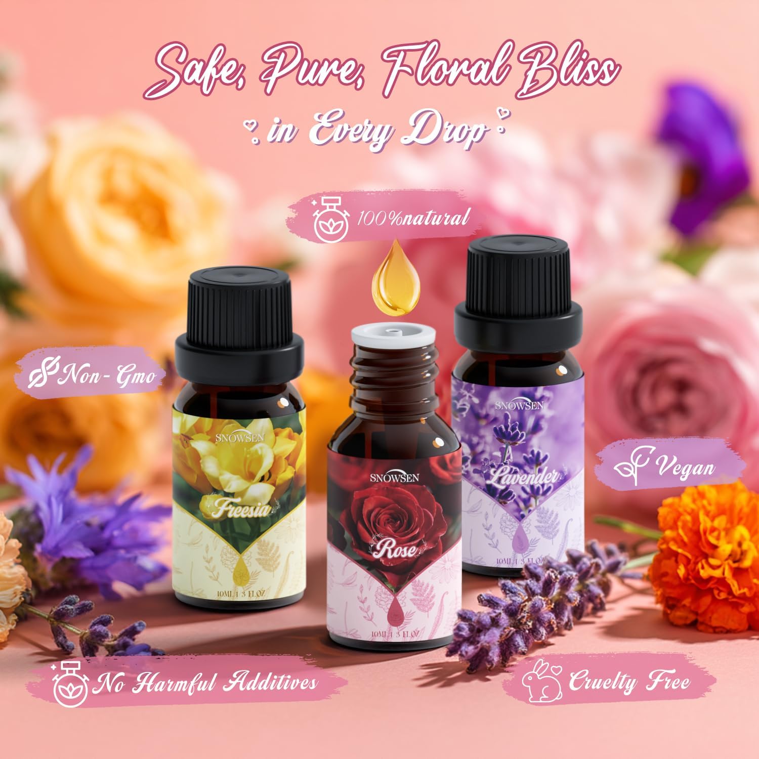 Pure Scents, Guilt-Free Indulgence: Made with care and compassion, this floral important oil set is vegan and cruelty-free—no animal testing, no harsh substances, simply clear and pure floral bliss. Take pleasure in your favourite important oils with peace of thoughts.