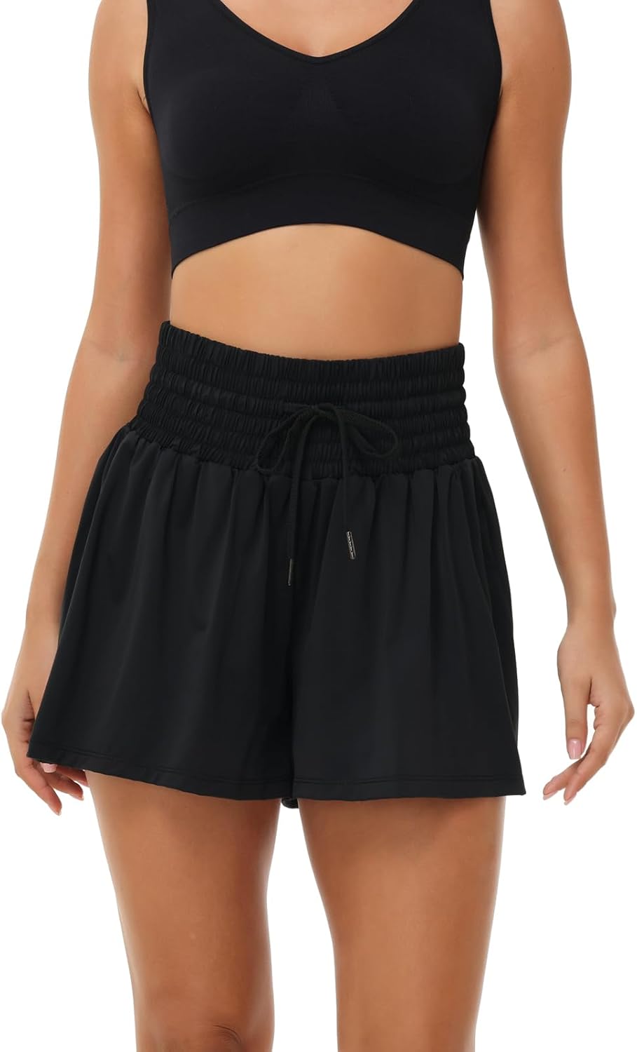 Flowy Athletic Shorts for Women Gym Yoga Workout Running Short High Waisted with Pockets Cute Clothes Casual Summer