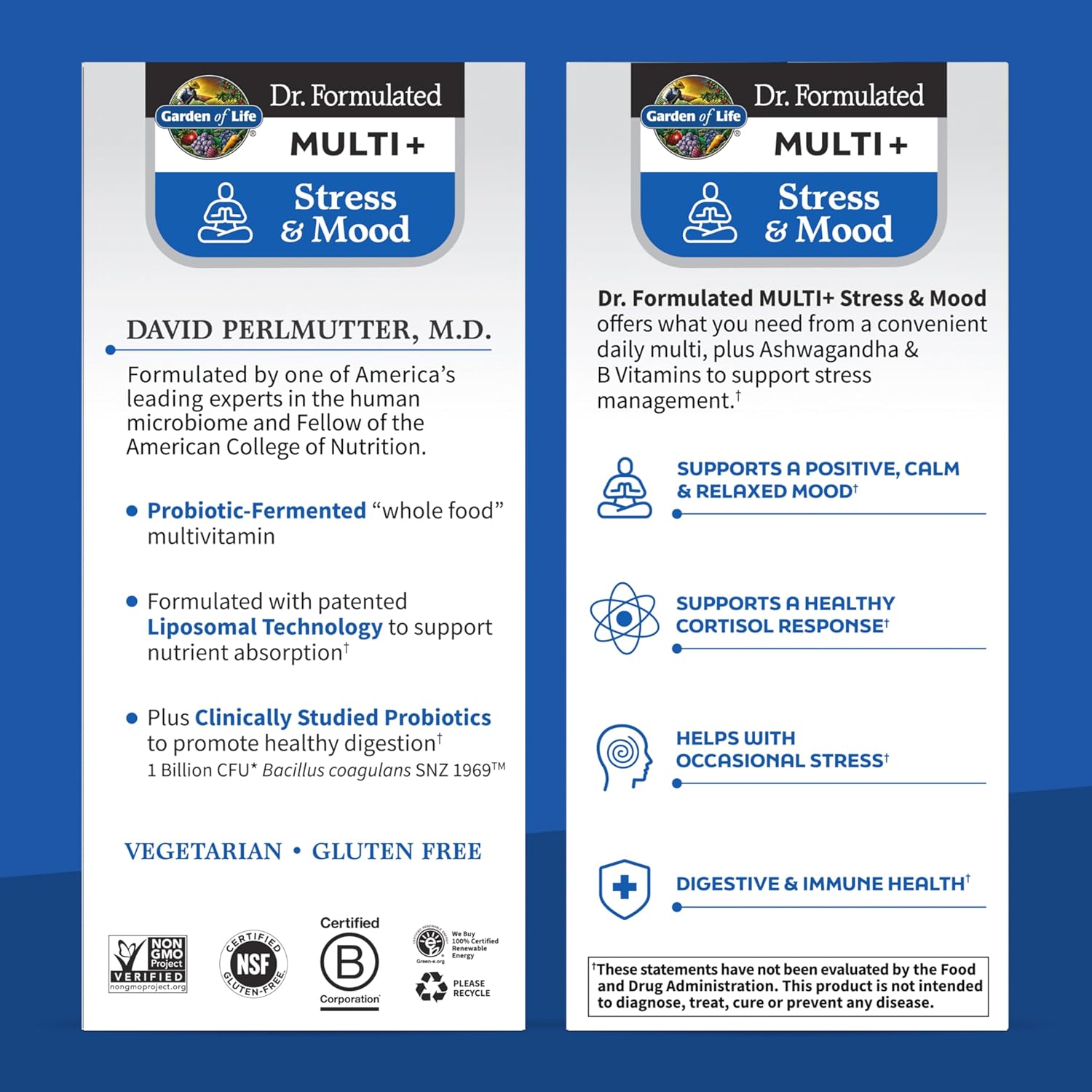 Backyard of Life Dr. Formulated Multi+ Stress & Temper† is a handy every day multivitamin that’s filled with important vitamins, Ashwagandha, and B Nutritional vitamins. Formulated with patented Liposomal Expertise, this “”entire meals”” multivitamin is designed for optimum nutrient absorption. It additionally consists of clinically studied probiotics to advertise wholesome digestion and assist immune perform.† With 1 Billion CFU* of Bacillus coagulans SNZ 1969™, this system is backed by science and formulated by Dr. David Perlmutter, a number one knowledgeable within the human microbiome. This complement is Vegetarian and Third-Social gathering Licensed Non-GMO, Gluten Free, and B Corp Licensed. Take management of your chill vibes with Backyard of Life Dr. Formulated Multi+ Stress & Temper.† †These statements haven’t been evaluated by the Meals and Drug Administration. This product just isn’t supposed to diagnose, deal with, remedy or forestall any illness.