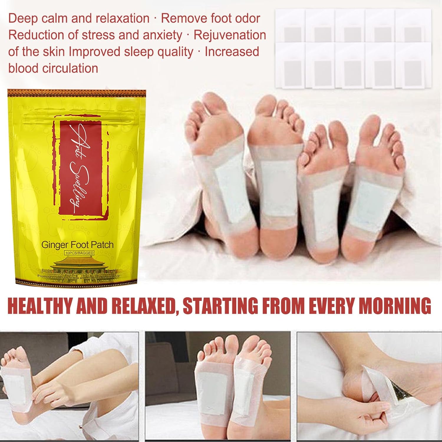 Ginger Foot Pads, 10Pcs Foot Patches, Foot Care Patch, Patches for Ladies and Males