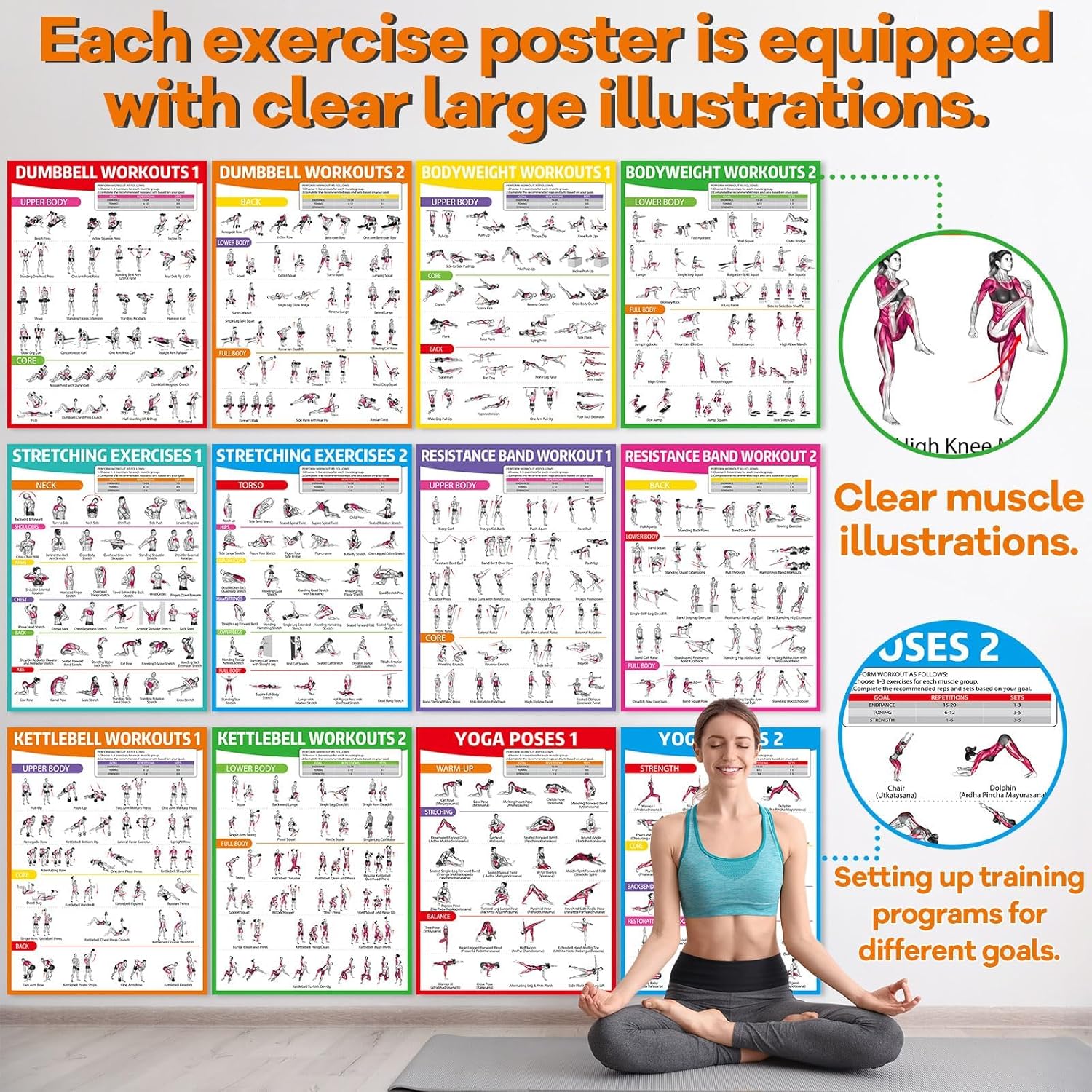 High quality Materials: Comprised of sturdy, high-quality paper and coated with a shiny laminate, these dumbbells, body weight, stretching, resistance bands, yoga, kettlebells train charts resist tearing, moisture, and fading. Their clear, vibrant prints guarantee long-lasting visibility, making them reliable health health club posters for any dwelling health club setup.