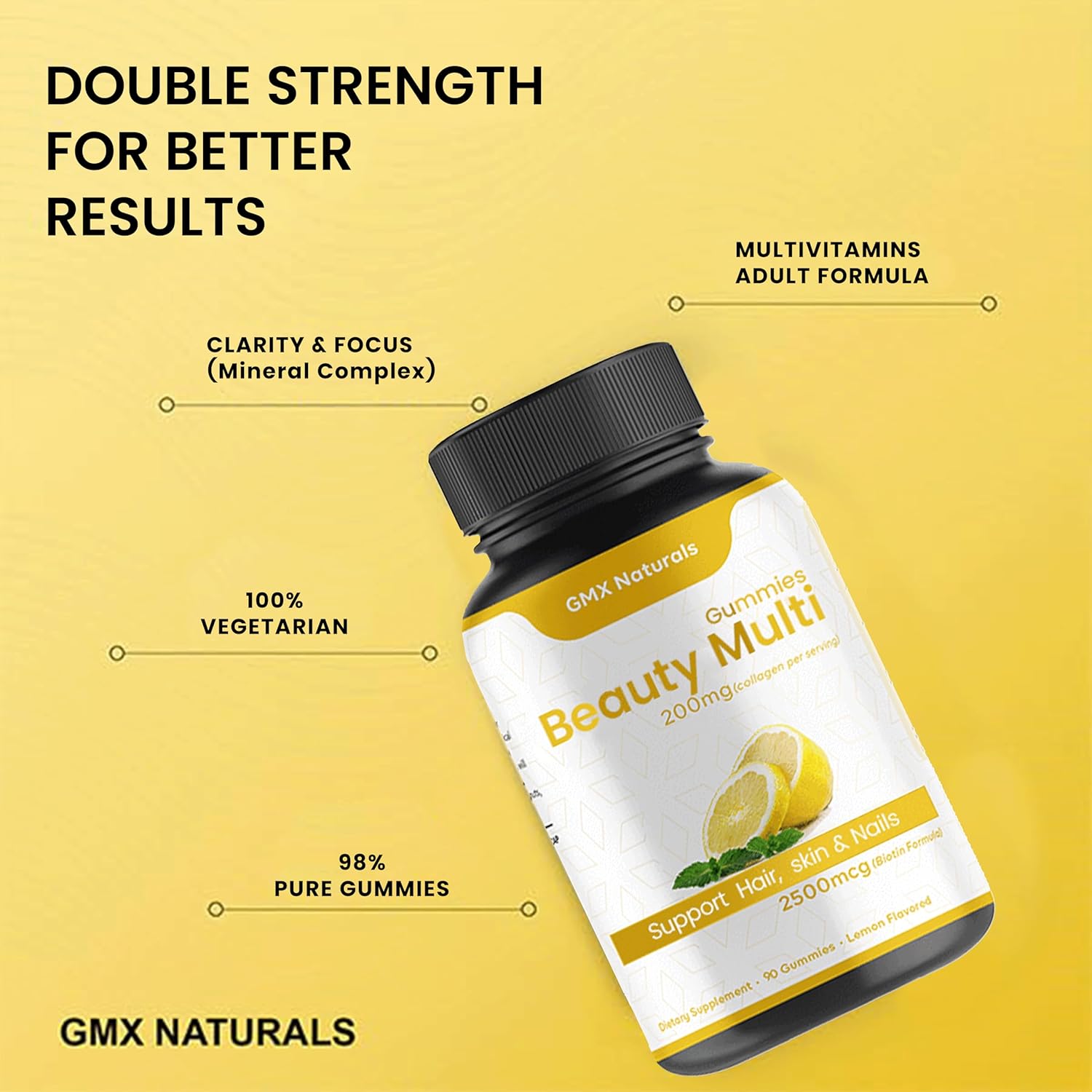 GMX Beauty Multi Gummies Hair, Skin & Nails Support with Biotin & Collagen Lemon Flavor Non-GMO, Made in USA Gummy Vitamins for Women 60 Gummies