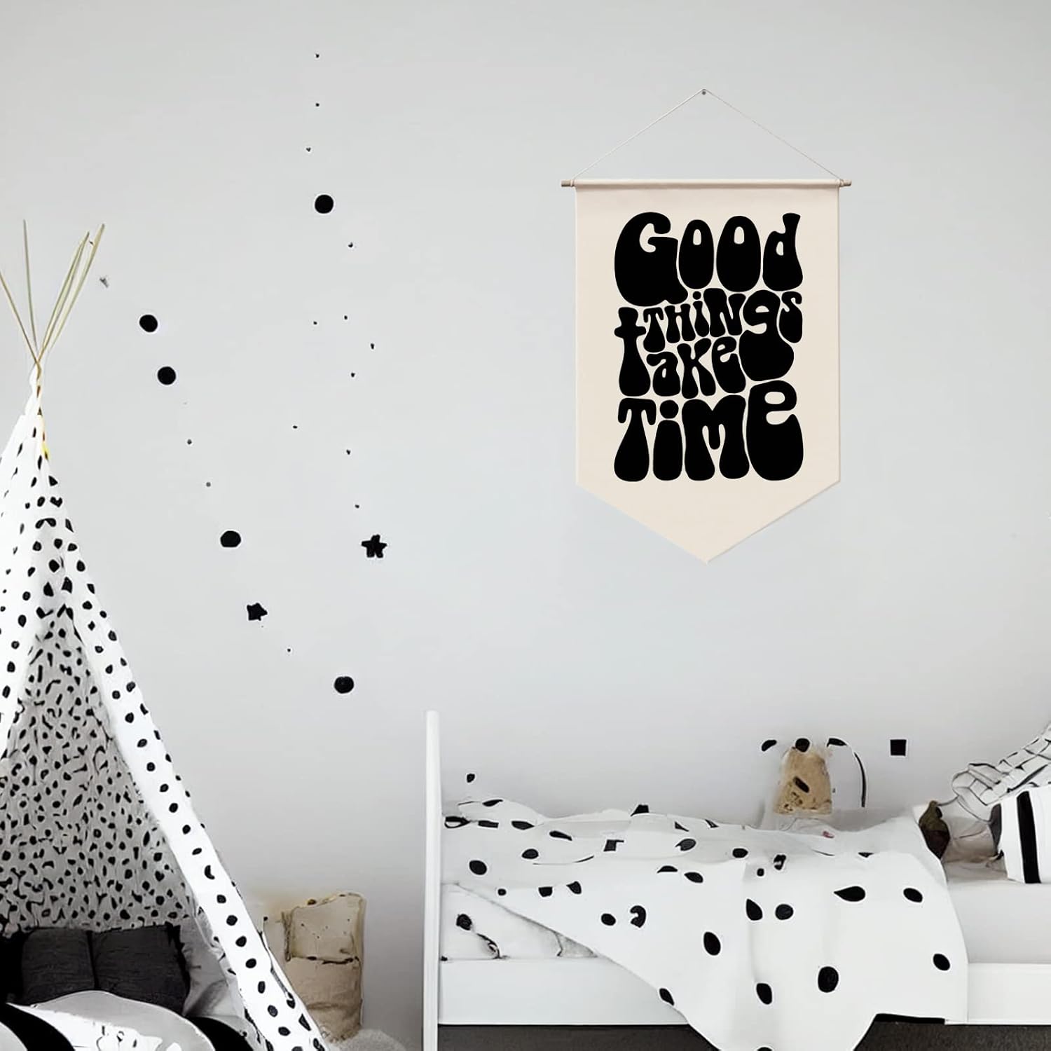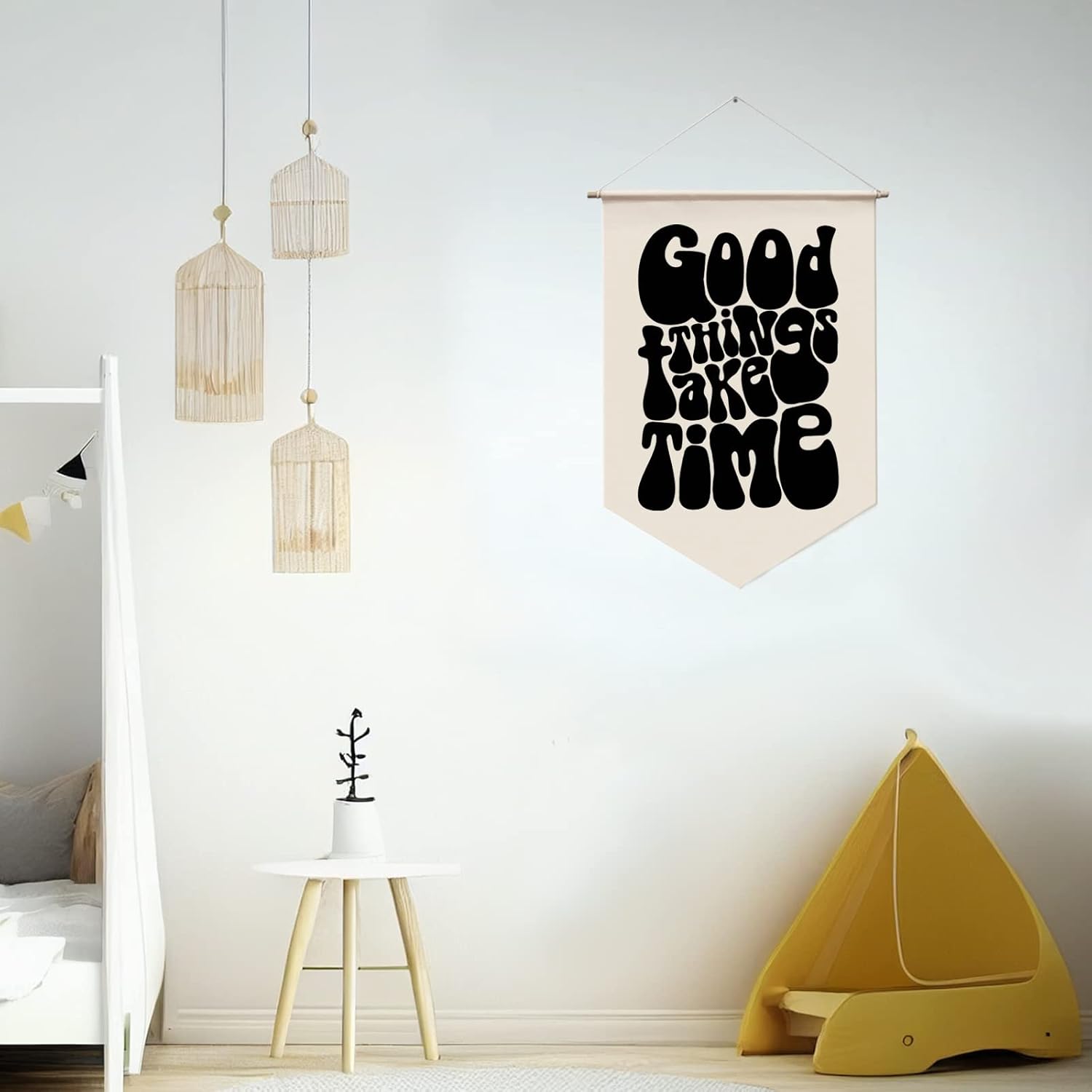 Good Things Take Time Wall Hanging Banner Positive Affirmations Wall Decor Housewarming Gift 70s Retro Vintage Wall Art Mindfulness Wall Art Inspirational Hanging Banner