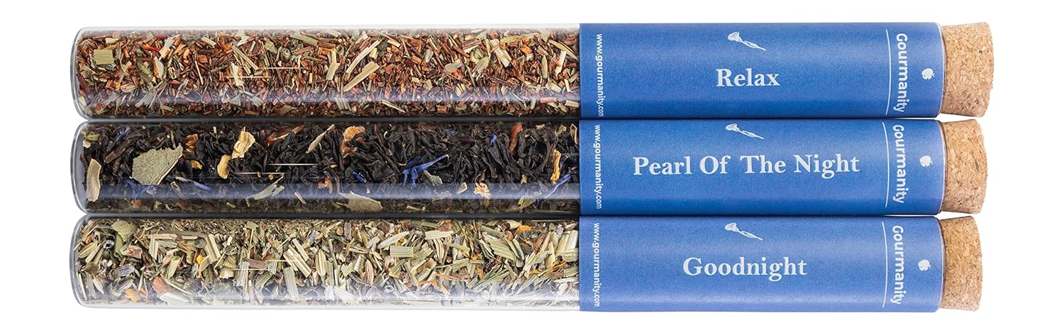 A FLAVOR FOR EVERY MOOD: Inhale the aromatic aromas and watch the vivid colours unfurl as you brew a chilled cuppa with Gourmanity specialty teas. Heat up and snuggle down with our 3 sleepy tea flavors: Loosen up- a lightweight and fruity bedtime tea; Pearl of the Evening- a fruit-infused black tea mix; and Goodnight, a lemon-flavored bring-on-the-sleep tea.