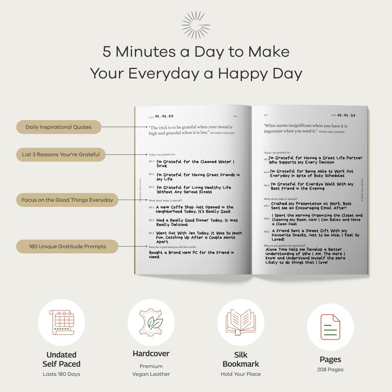 Be the first to review “Gratitude Gifted 5-Minute Guided Gratitude Journal – Daily 180 Prompts, Self-Care & Mindfulness, Leather Hardcover, Undated to Foster Happiness, Wellness, Positivity for Men & Women”