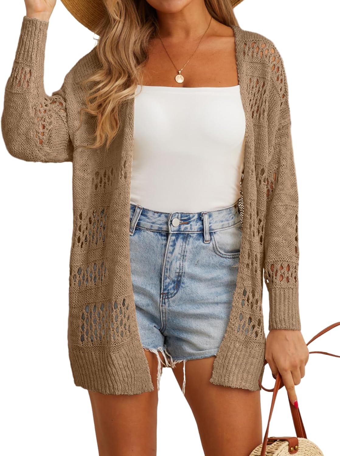 GRECERELLE Summer season Cardigan for Girls Crochet Netted Open Entrance Cardigans Sweater Lightweight Summer Cardigan for Women Spring Netted Crochet Knit Cardigans SweatersLightweight Summer Cardigan for Women Spring Netted Crochet Knit Cardigans Sweaters