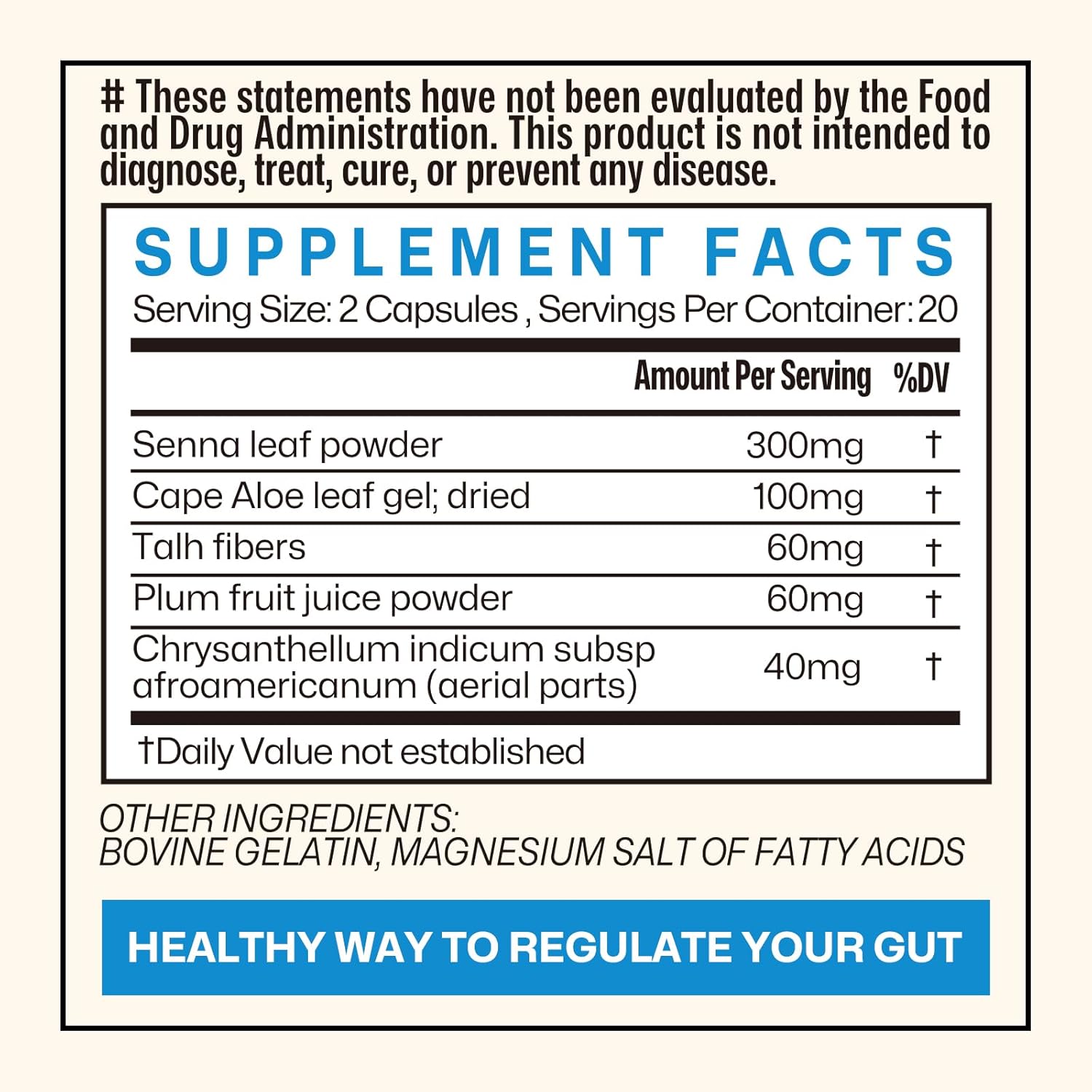 Gut Cleanse Detox for Women, Colon Cleanse & Gentle Herbal Supplements for Men, Powered with Senna Leaves, Plum, Chrysanthemum, Acacia Gum & Aloe Vera–40 Capsules (A01)